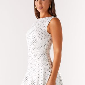 Kelda Mini Dress – White Polka Dot