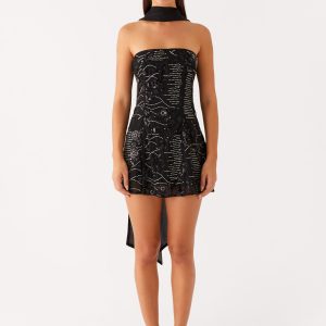 Kiesha Strapless Scarf Mini Dress – Black