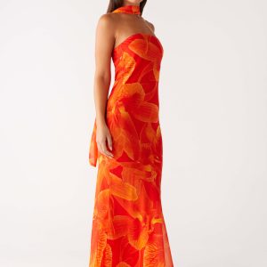 Under The Pagoda Maxi Dress – Orange Floral