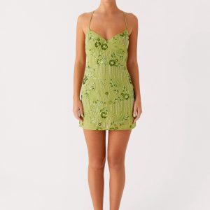 Vietta Sequin Cami Micro Mini Dress – Lime