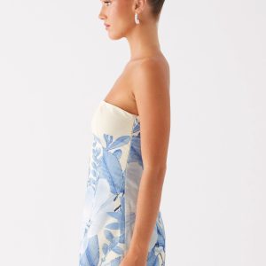 Denby Strapless Mini Dress – Blue Floral Print