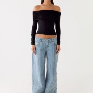 Johnny Low Rise Wide Leg Denim Jeans – Light Blue Wash