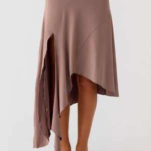 Jisoo Asymmetric Midi Skirt – Desert Taupe