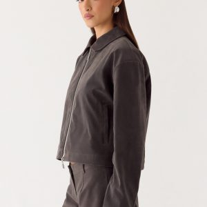 Austina Faux Suede Boxy Jacket – Tan Grey