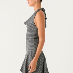 Bad Alive Halter Hanky Mini Dress – Grey Marle Stripe
