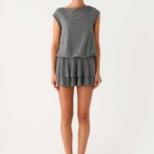 Bambola Wide Neck Mini Dress – Grey Marle Stripe