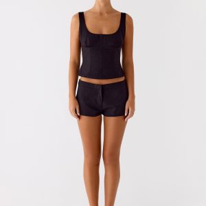 Coastline Cotton Bustier Top – Black