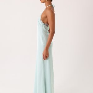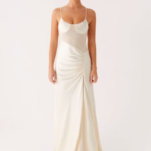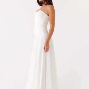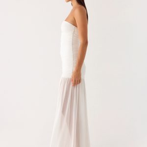 Sassafras Beaded Flower Strapless Maxi Dress – White