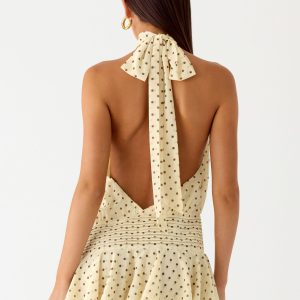 Willow Chiffon Mini Dress – Yellow Polkadot
