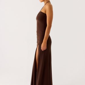 Callie Ruched Maxi Dress – Chocolate