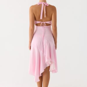 Faelie Halter Neck Asymmetrical Midi Dress – Pink