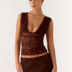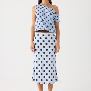 Stick Around Top – Blue Mocha Dot