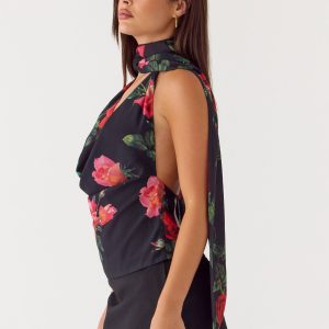 Get Me Halter Backless Top – Midnight Bloom