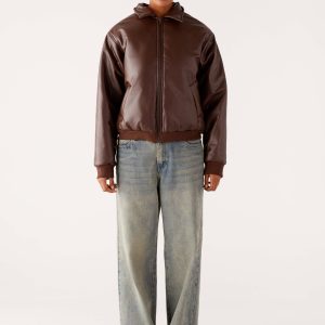 Outlands Faux Leather Bomber Jacket – Chocolate