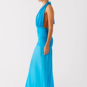 Dilemma Halter Maxi Dress – Turquoise Blue