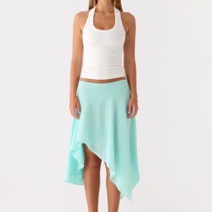 Kia Low Rise Asymmetrical Midi Skirt – Aqua