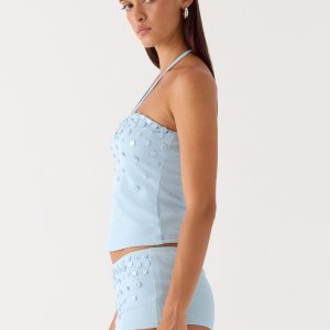 Be Alright Beaded Top – Turquoise