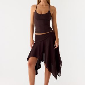 Kia Low Rise Asymmetrical Midi Skirt – Chocolate