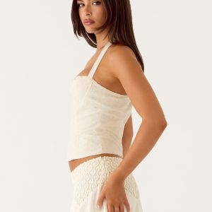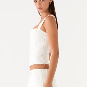 The Addictive Top is made for sun-soaked days and confident evening styling. Featuring a sweetheart neckline with thick adjustable straps. front button detail. and a corset-inspired fit. its slim silhouette is complemented by lace accents at the back for a feminine. polished finish.