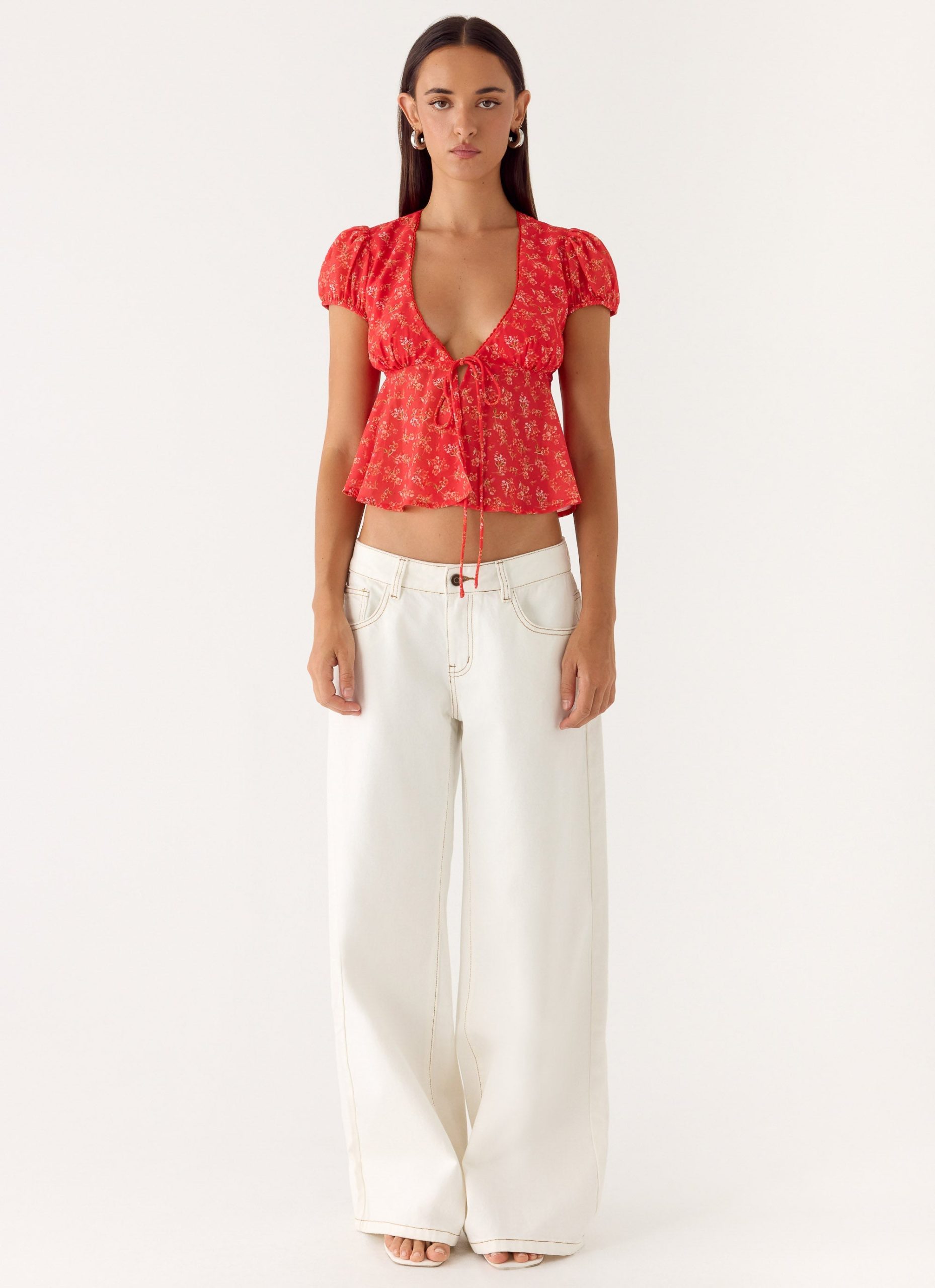 The Ailani Top drifts effortlessly from golden hour to after dark. Designed in an exclusive print with a tie front bust opening. it balances soft romance with carefree confidence. Mini elasticated puff sleeves and a delicate scallop trim neckline frame the silhouette. while the relaxed waist fit keeps it light and undone for balmy nights ahead.