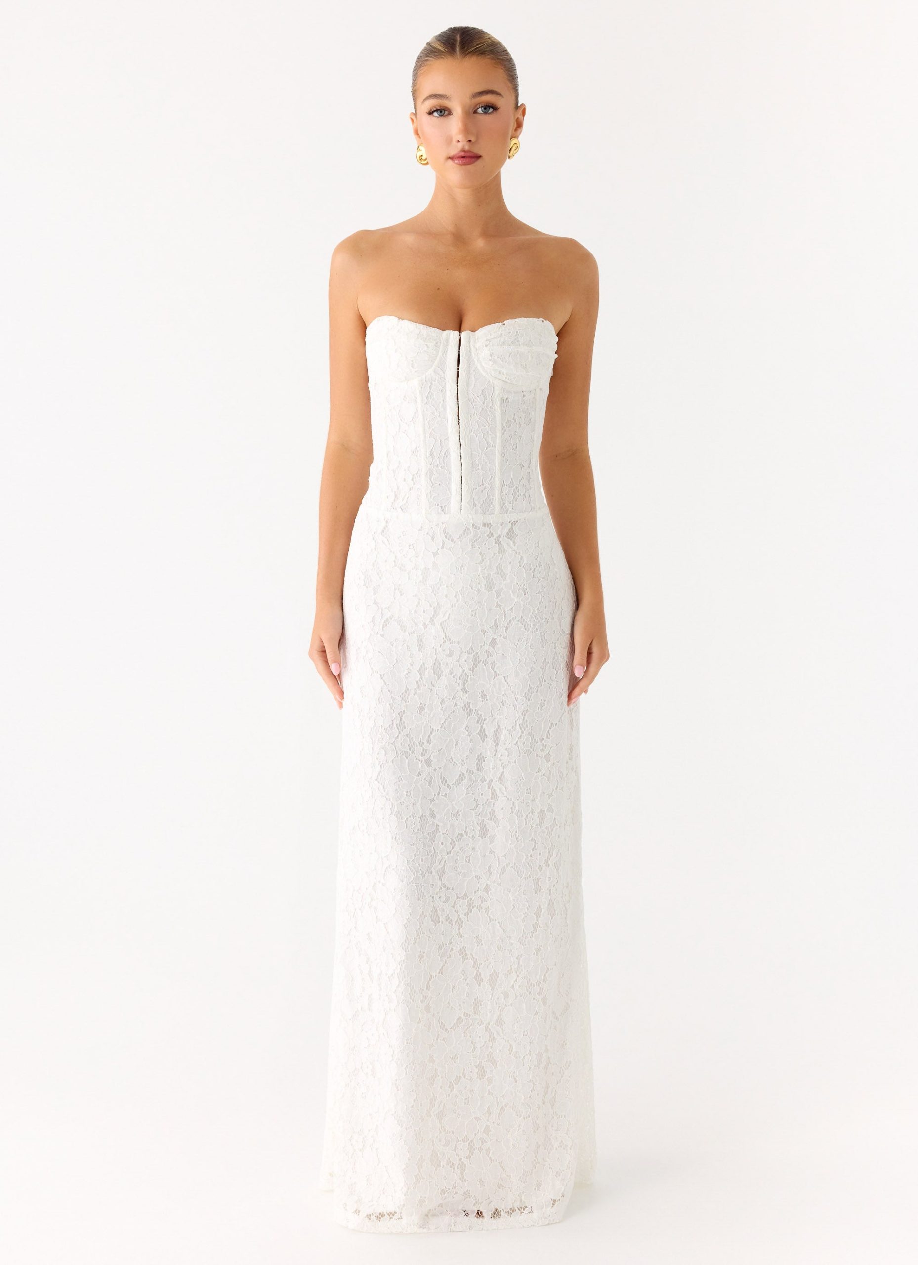 The Already Know Lace Maxi Dress is made for moments that linger long after the sun sets. Designed with a structured bustier bodice and lace corset detailing. this fitted silhouette flatters the figure while offering a touch of timeless romance. Fully lined with boning and a back lace up detail. it’s the perfect piece for elevated evenings or special occasions.
