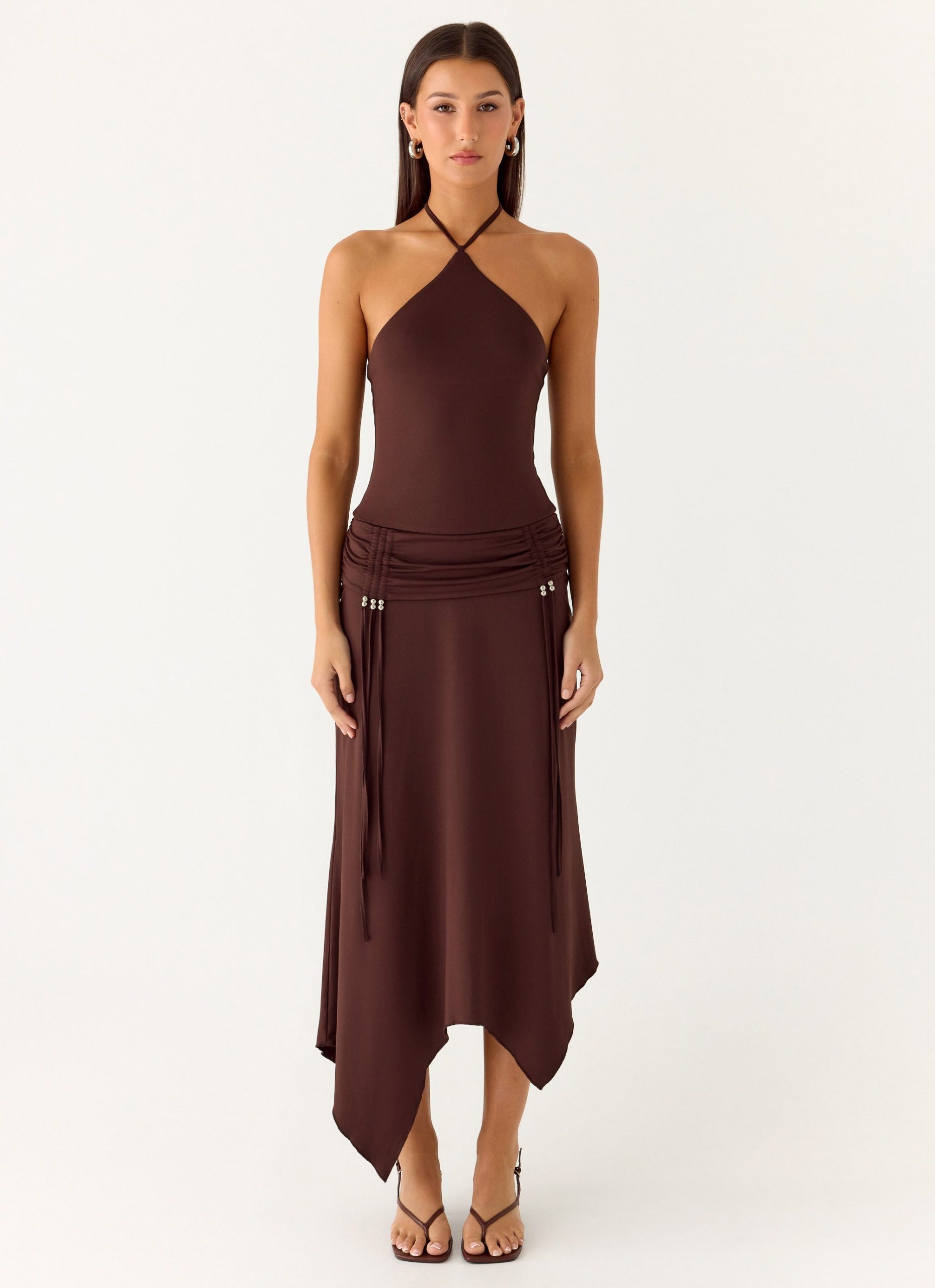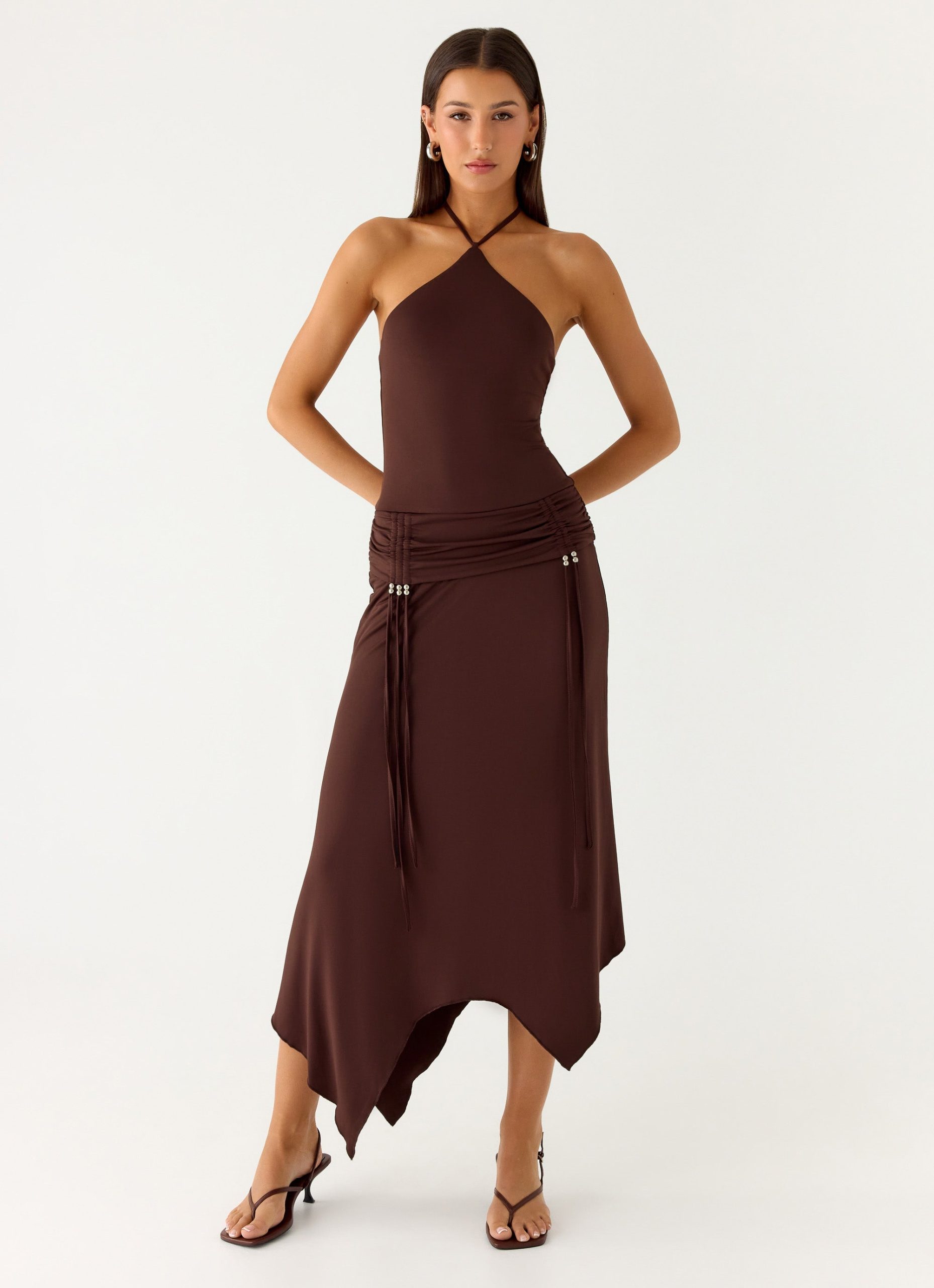 The Becerra Midi Dress is perfect for golden hour to after-dark moments. Featuring a halter neckline. this midi dress is fully lined for comfort while showcasing your silhouette with effortless elegance.