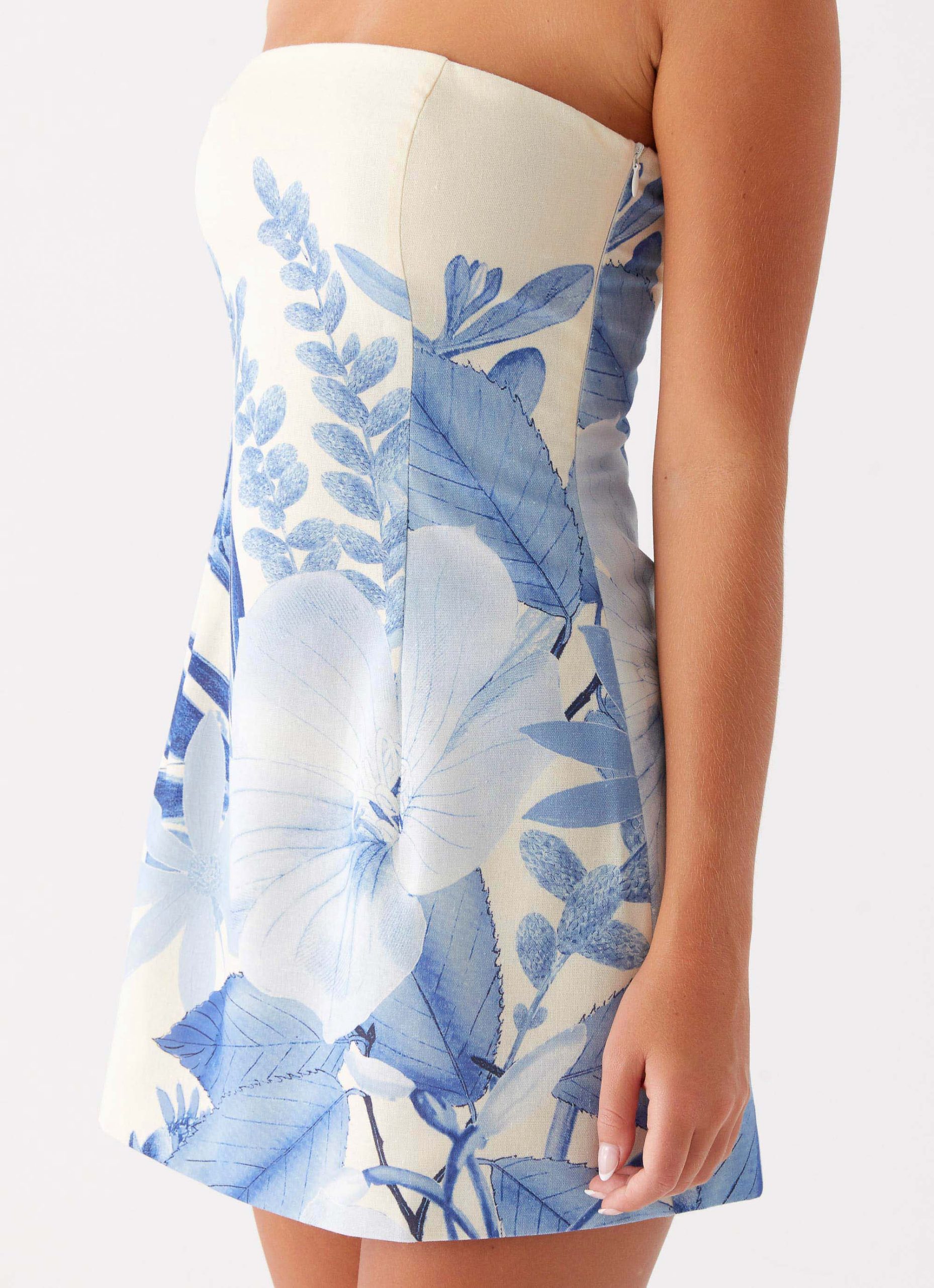 Denby Strapless Mini Dress – Blue Floral Print