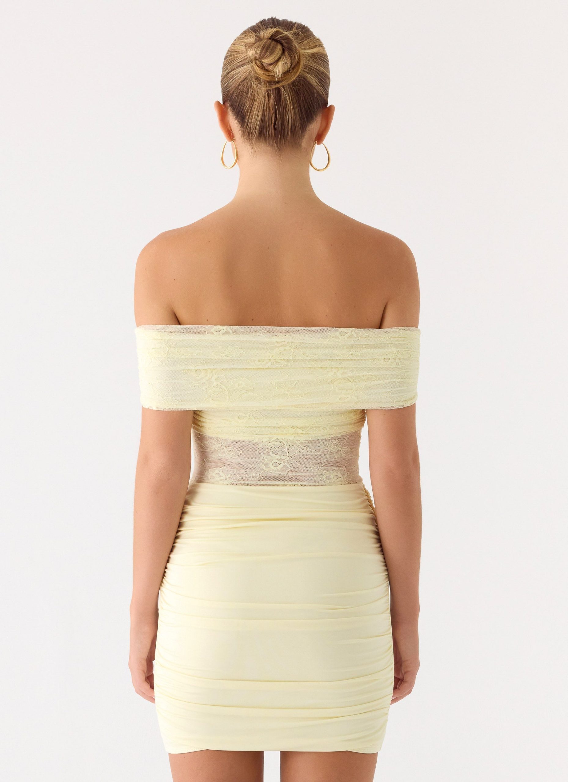 The Either Way Off Shoulder Mini Dress is made for sun-soaked days that effortlessly transition into golden evenings. Featuring an off-shoulder neckline and twisted bustier detailing. this fitted mini-length silhouette is finished with an open back and semi-sheer bodice for editorial elegance. Fully lined with silicone taping at the neckline. it combines comfort with feminine sophistication.