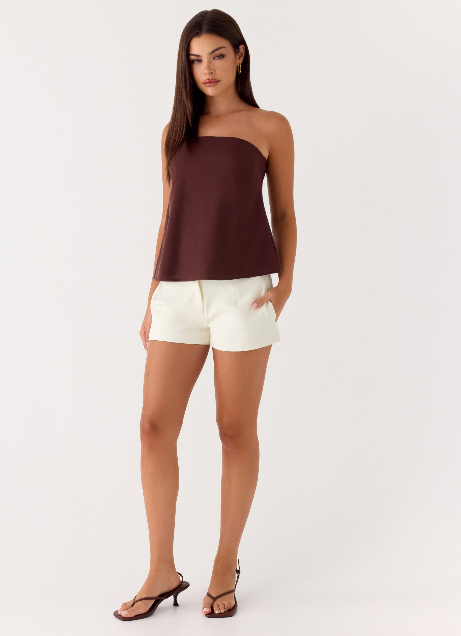 A chic strapless top crafted from a breathable cotton-linen blend. Designed with a clean strapless neckline. fully lined for comfort. and finished with a side invisible zipper for a sleek fit.