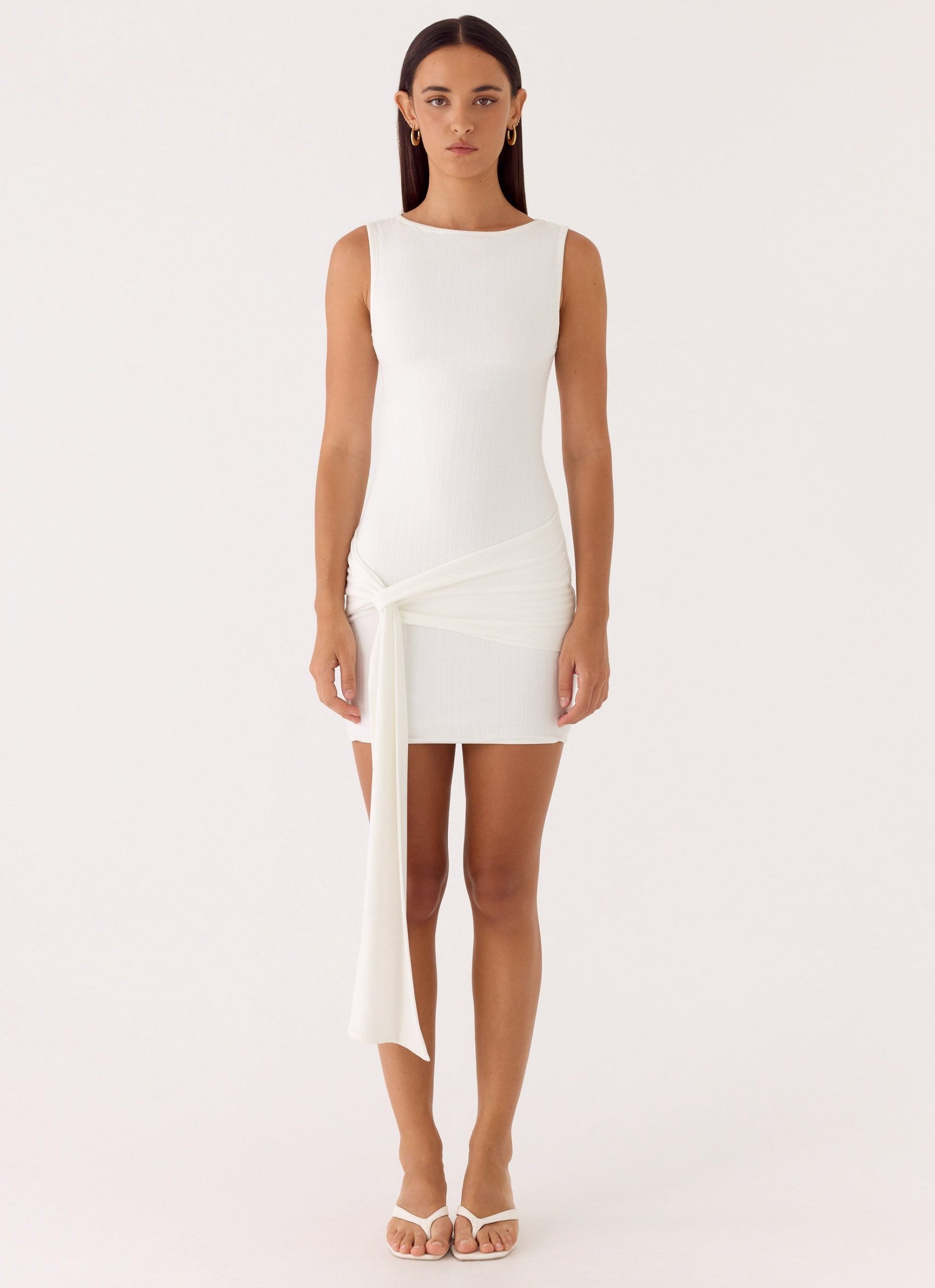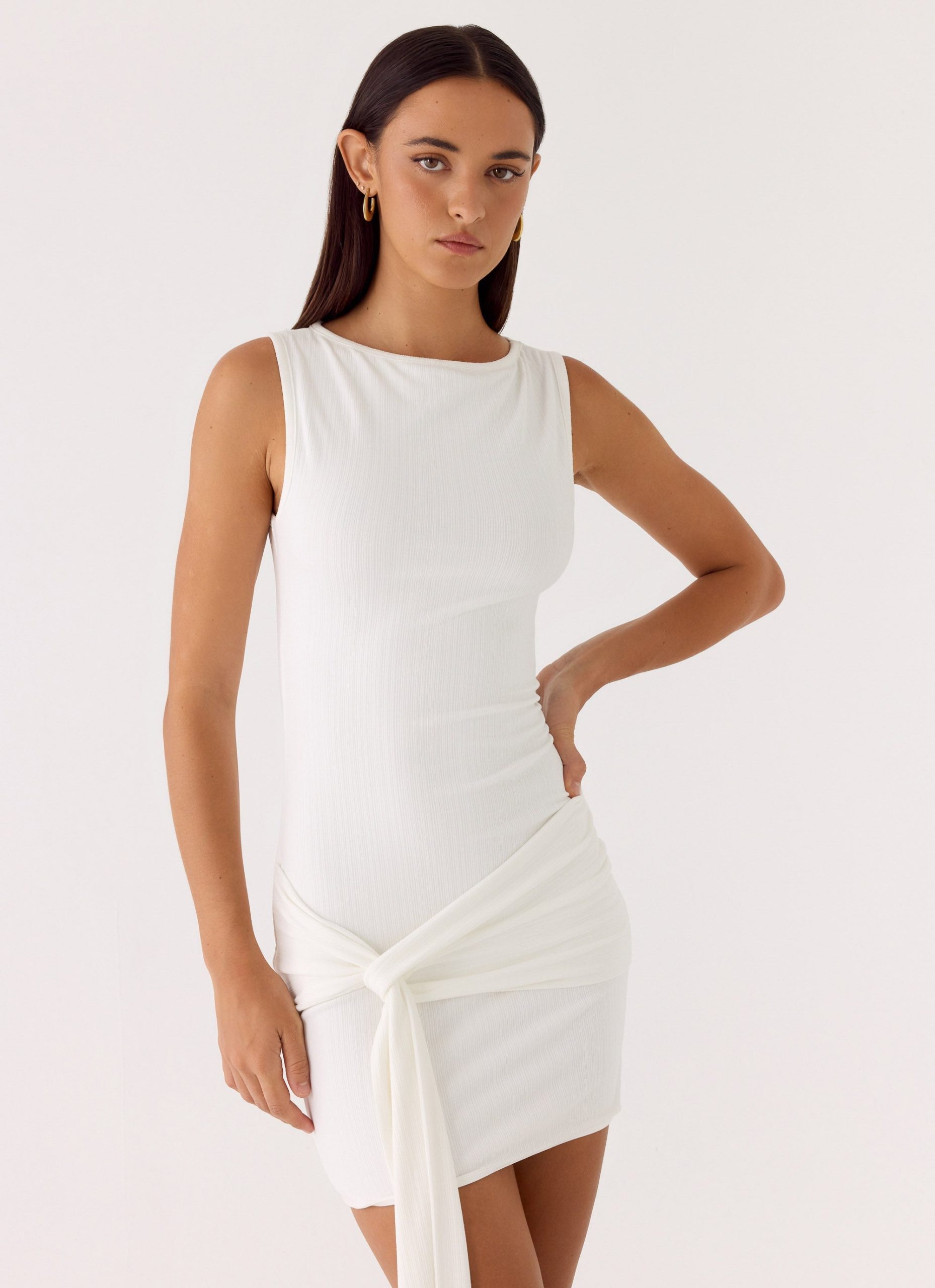 The Everly Mini Dress features a straight neckline and a flattering mini length that enhances the silhouette. while the front sash detail adds an editorial. feminine touch. Crafted from ribbed knit and fully lined for a smooth fit. it’s a confident. beach-to-bar statement piece.