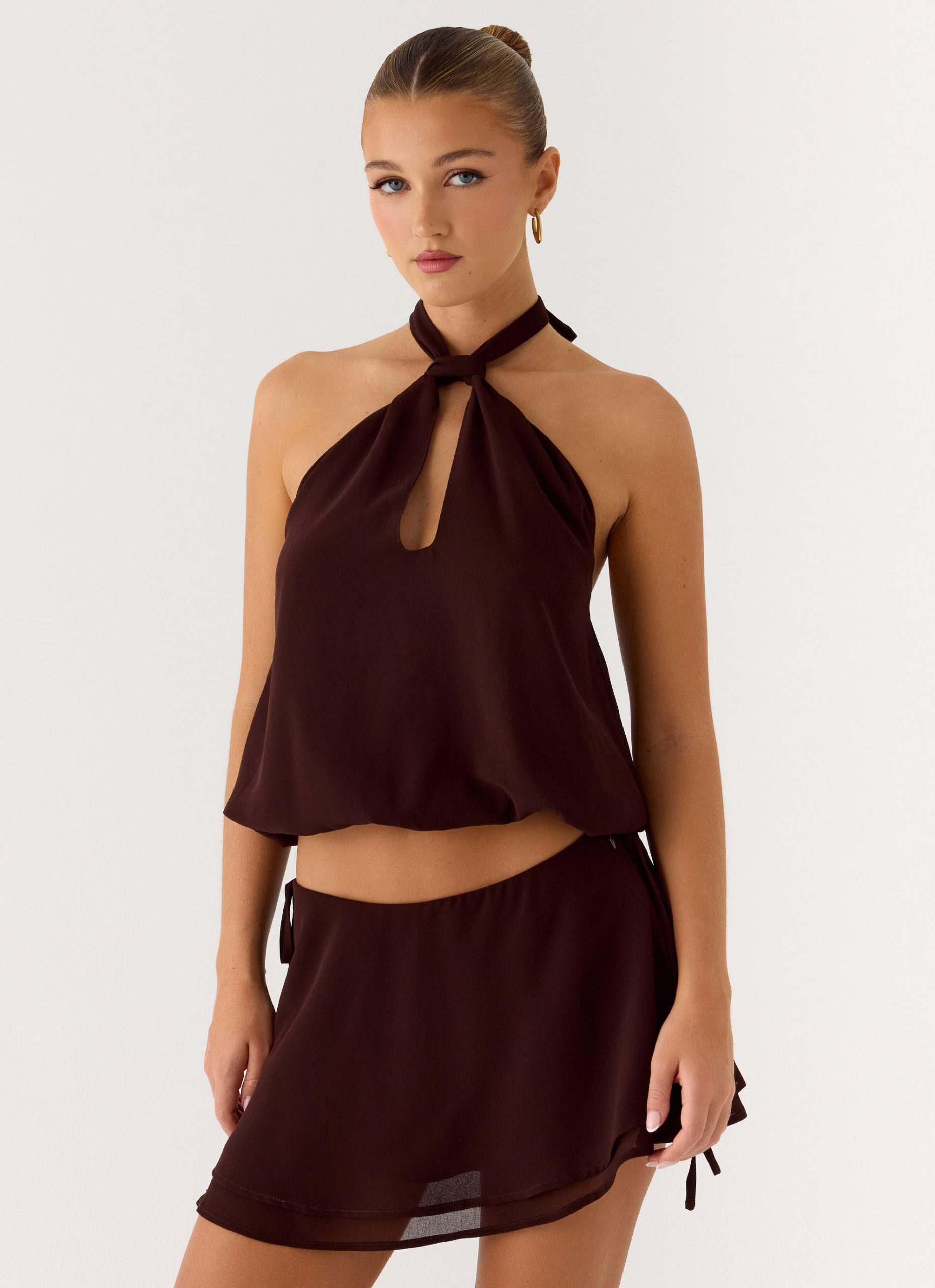 Kia Low Rise Asymmetrical Midi Skirt – Chocolate