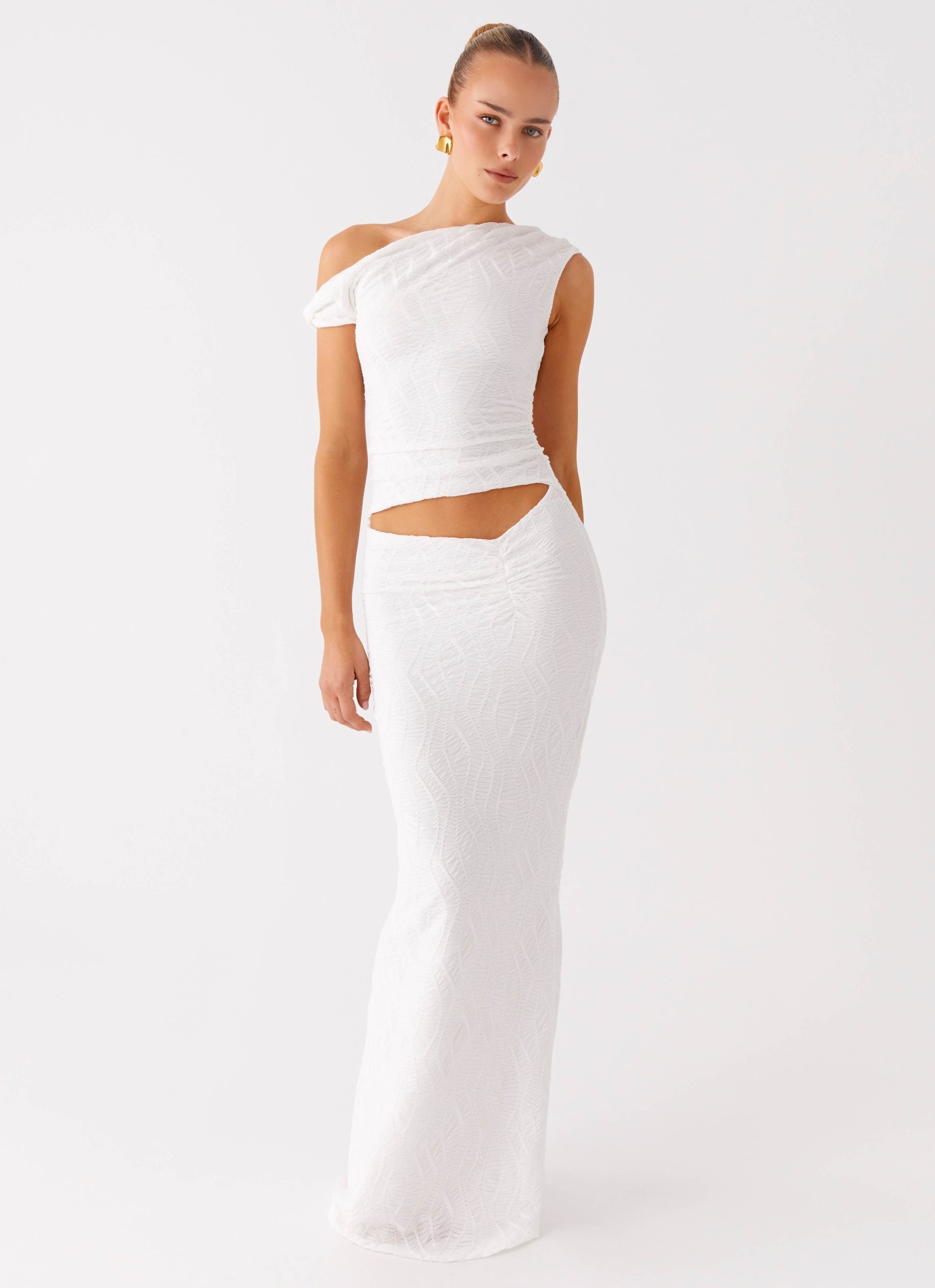 Galantis One Shoulder Maxi Dress – White