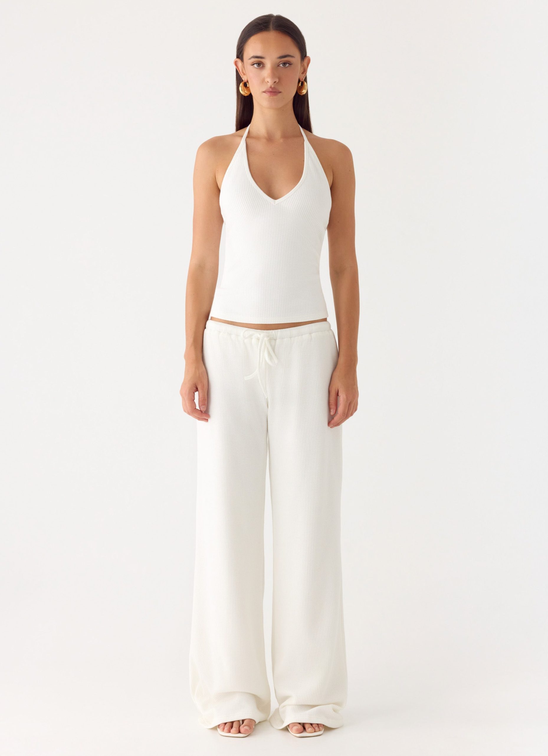 The Henry Halter Top is made for sun-soaked afternoons that drift into balmy nights. Designed with a halter neck strap and flattering V neckline. it frames the silhouette with effortless ease. while the waffle jersey fabric adds soft texture and movement. Confident and understated. it’s a piece that comes alive after dark.