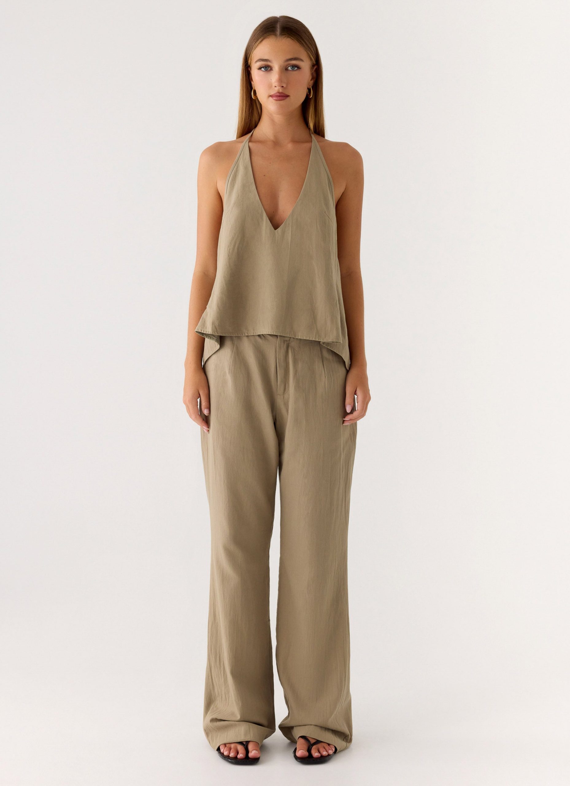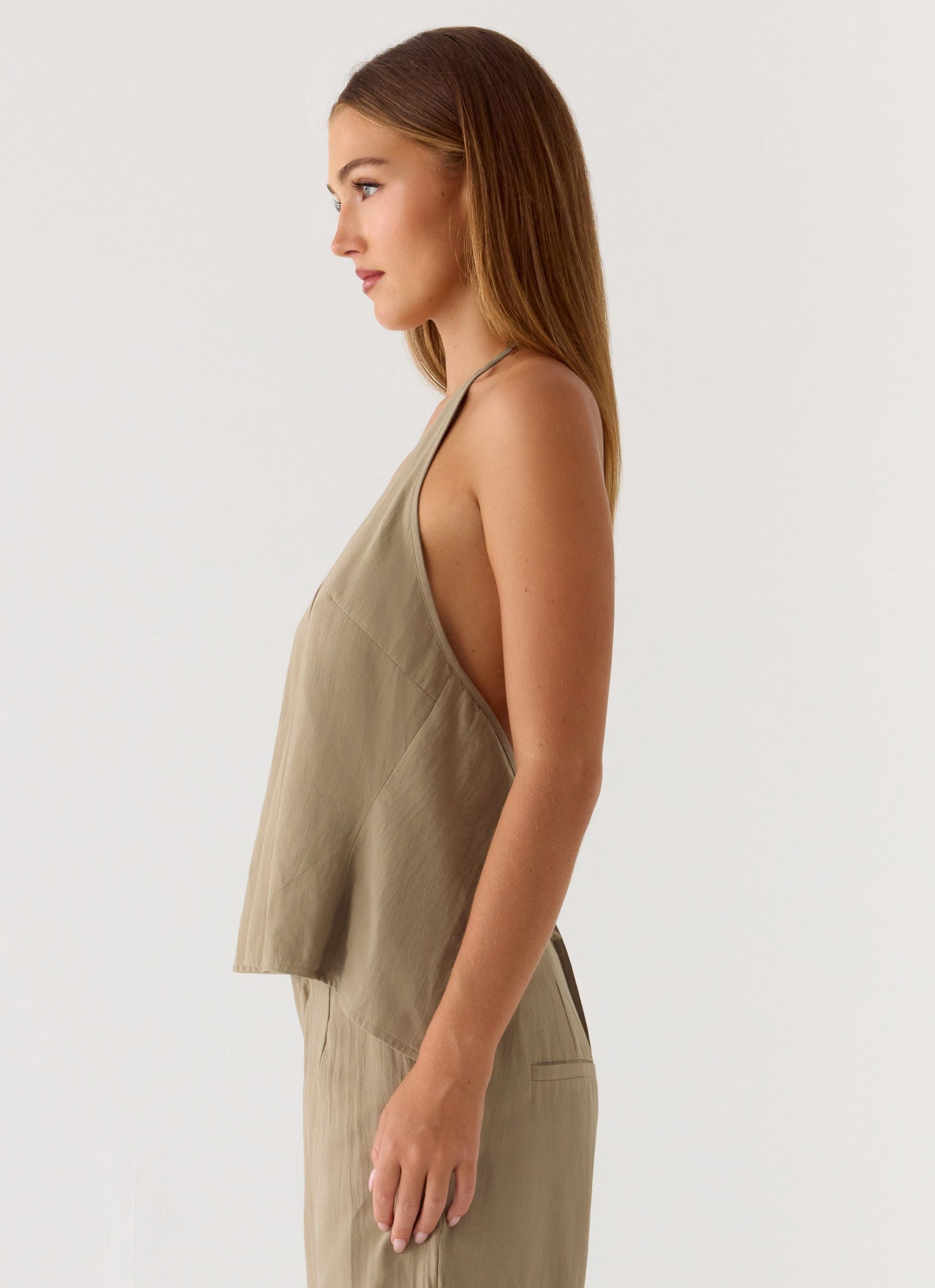 The Ingrid Top features a daring deep v – neckline. a striking open back. and delicate thin adjustable straps. This fully lined silhouette is designed with a relaxed yet refined shape. making it an essential piece for sun – soaked days.