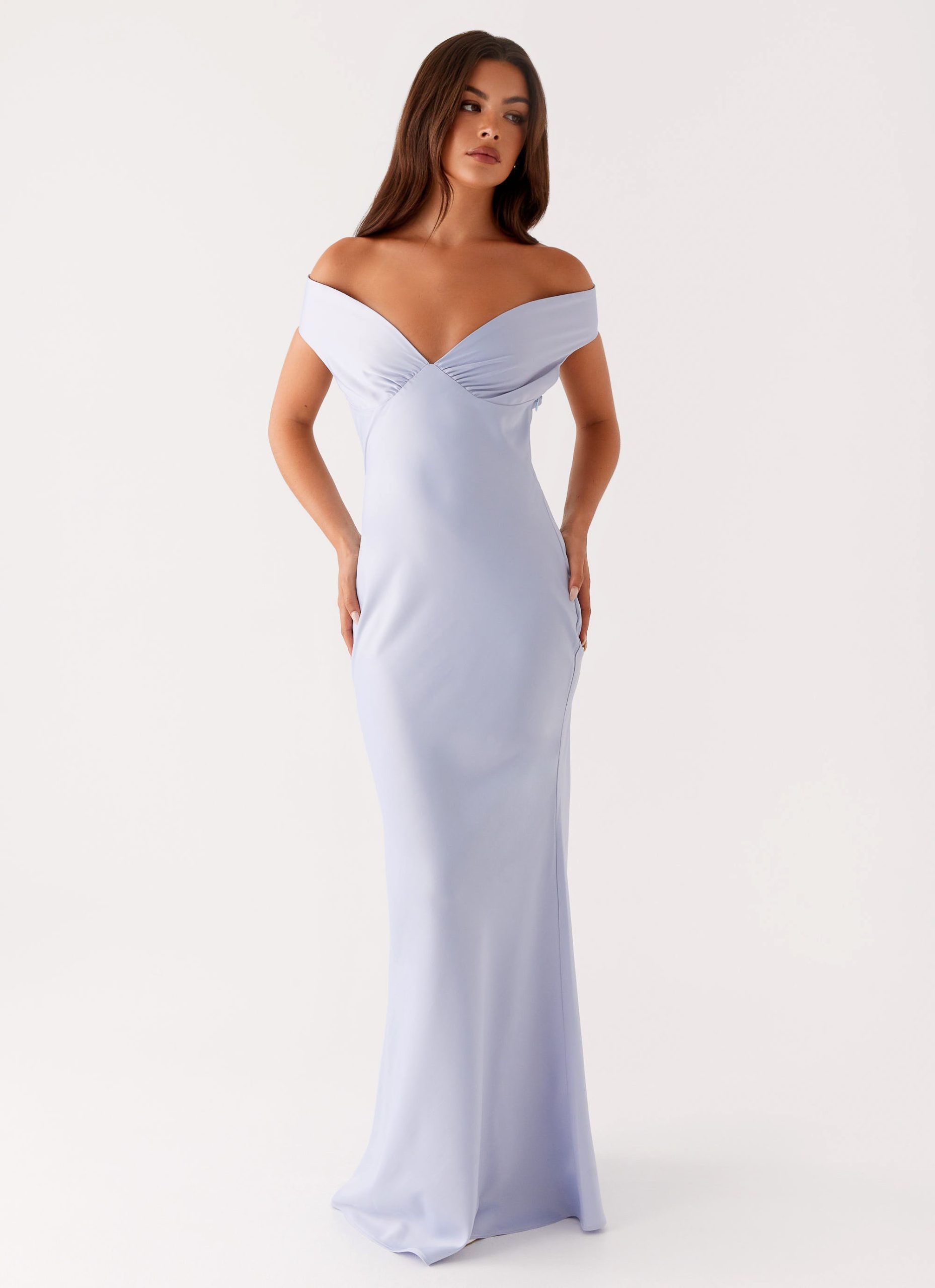 The Jenner Maxi Dress is your go-to for captivating evening elegance. Featuring an off-shoulder neckline and full-length silhouette. this dress drapes effortlessly. creating a refined yet sultry look.
