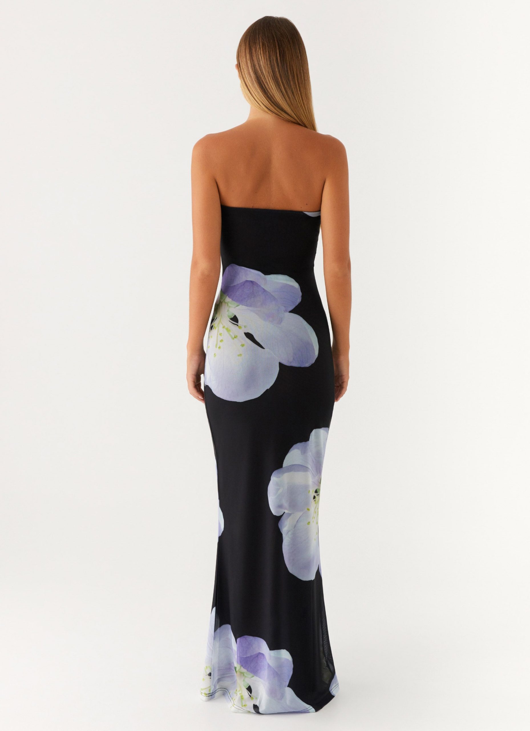 The Jorja Maxi Dress features a strapless neckline and is crafted from stretch mesh for a form-fitting look. Fully lined for comfort. it offers a sleek. elegant silhouette perfect for any occasion.