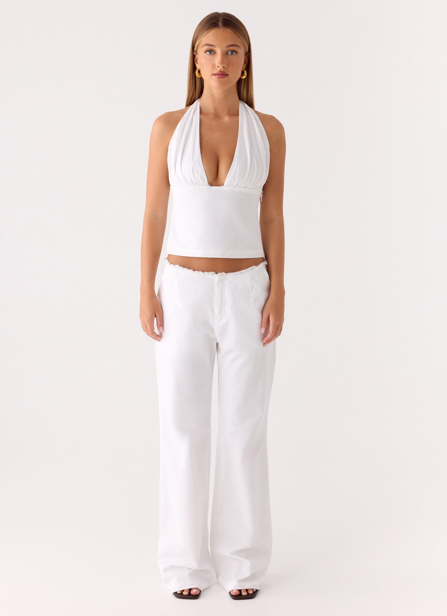 The Josephina Pant is made for effortless golden-hour style that transitions seamlessly into nights. With a low-rise fit and sleek front zipper. this fully lined pant features practical front pockets and a flattering silhouette crafted in a soft cotton-linen blend. Ideal for sunlit strolls or after-dark drinks.