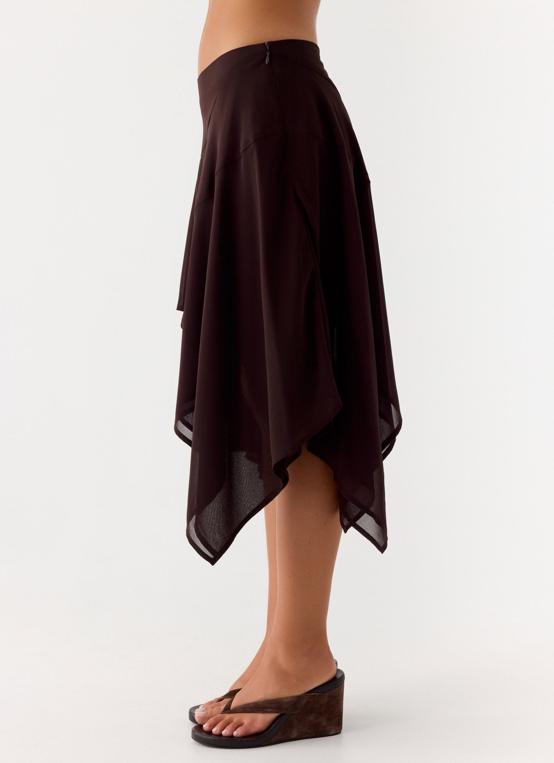 Kia Low Rise Asymmetrical Midi Skirt – Chocolate