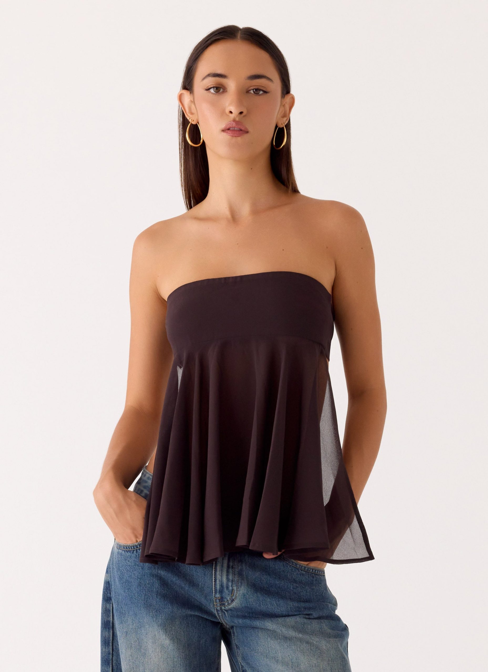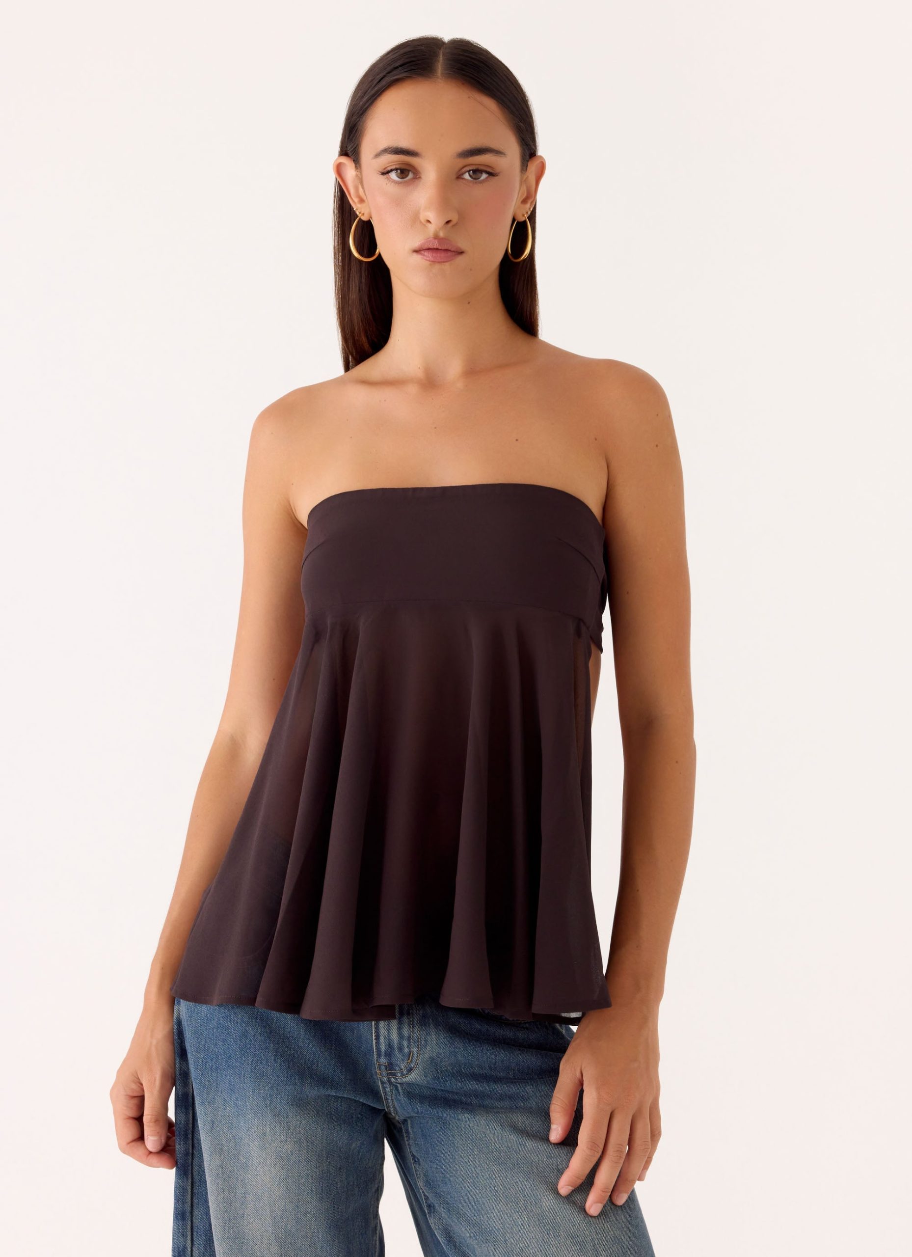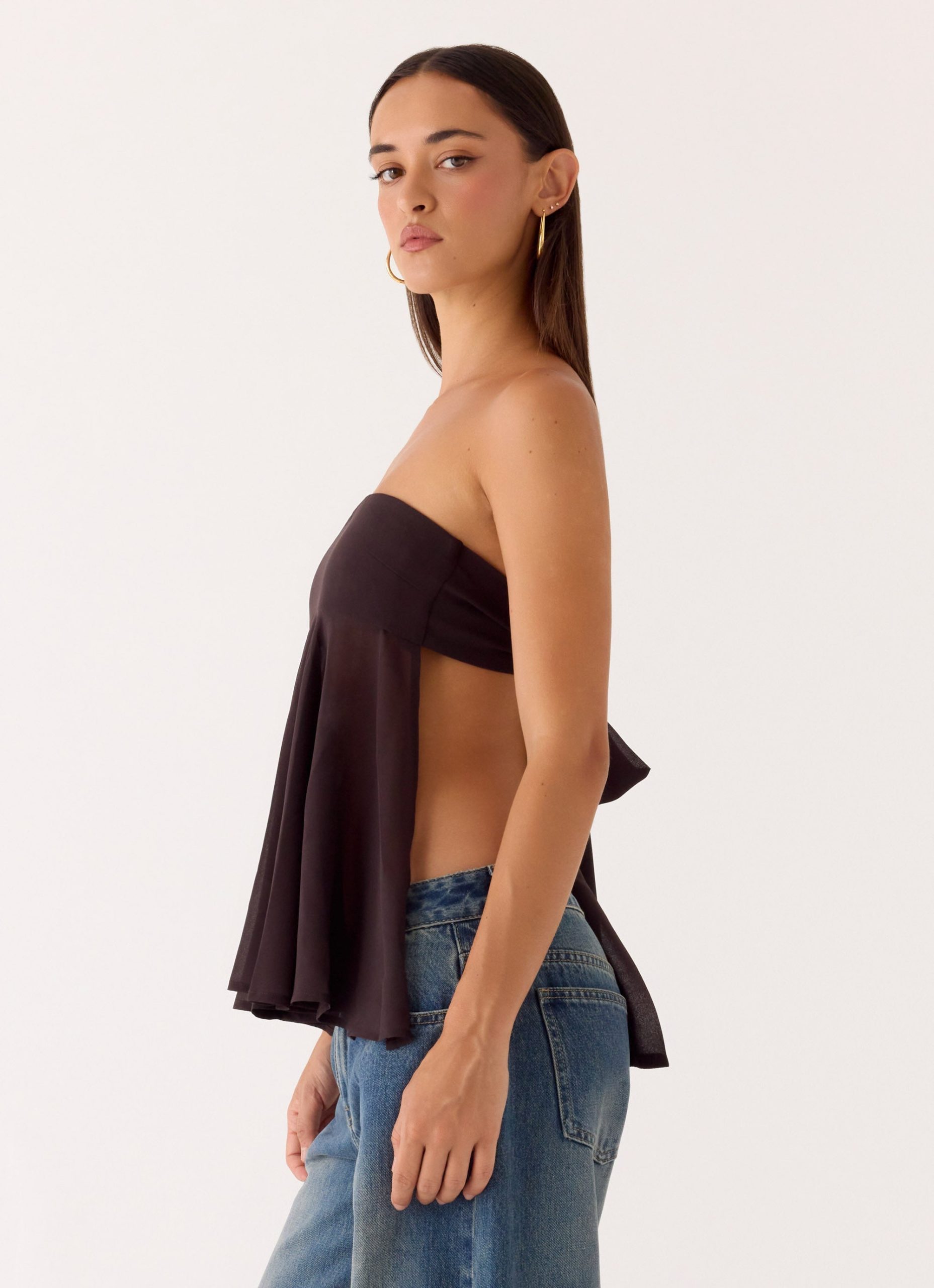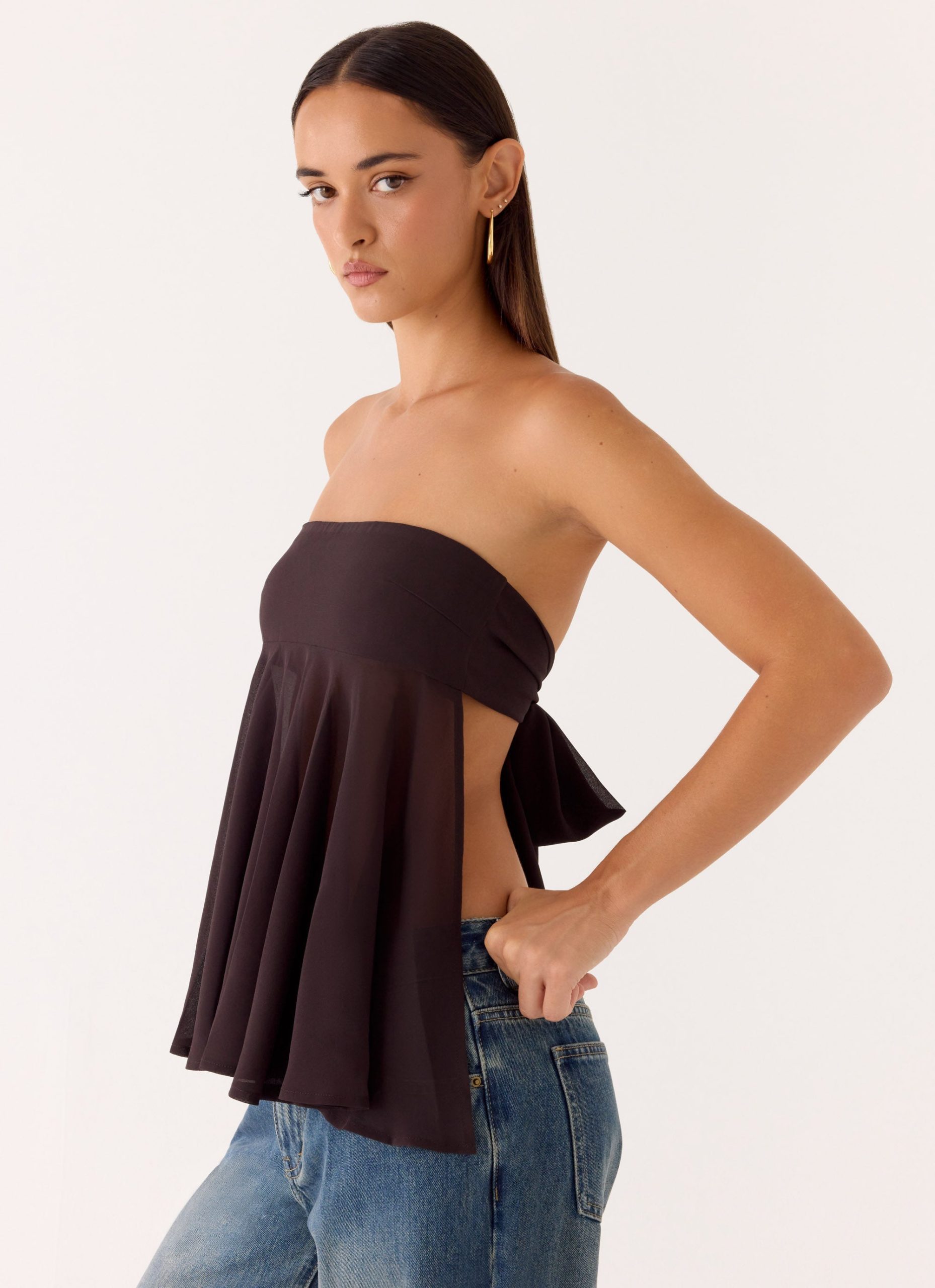 The Last I Heard Top is made for golden hour to after-dark allure. Featuring a strapless neckline with a lined bust and semi-sheer bodice. it sculpts the silhouette while the back tie and open back add playful. editorial detail. Fully lined where it counts. this top moves effortlessly with every step.