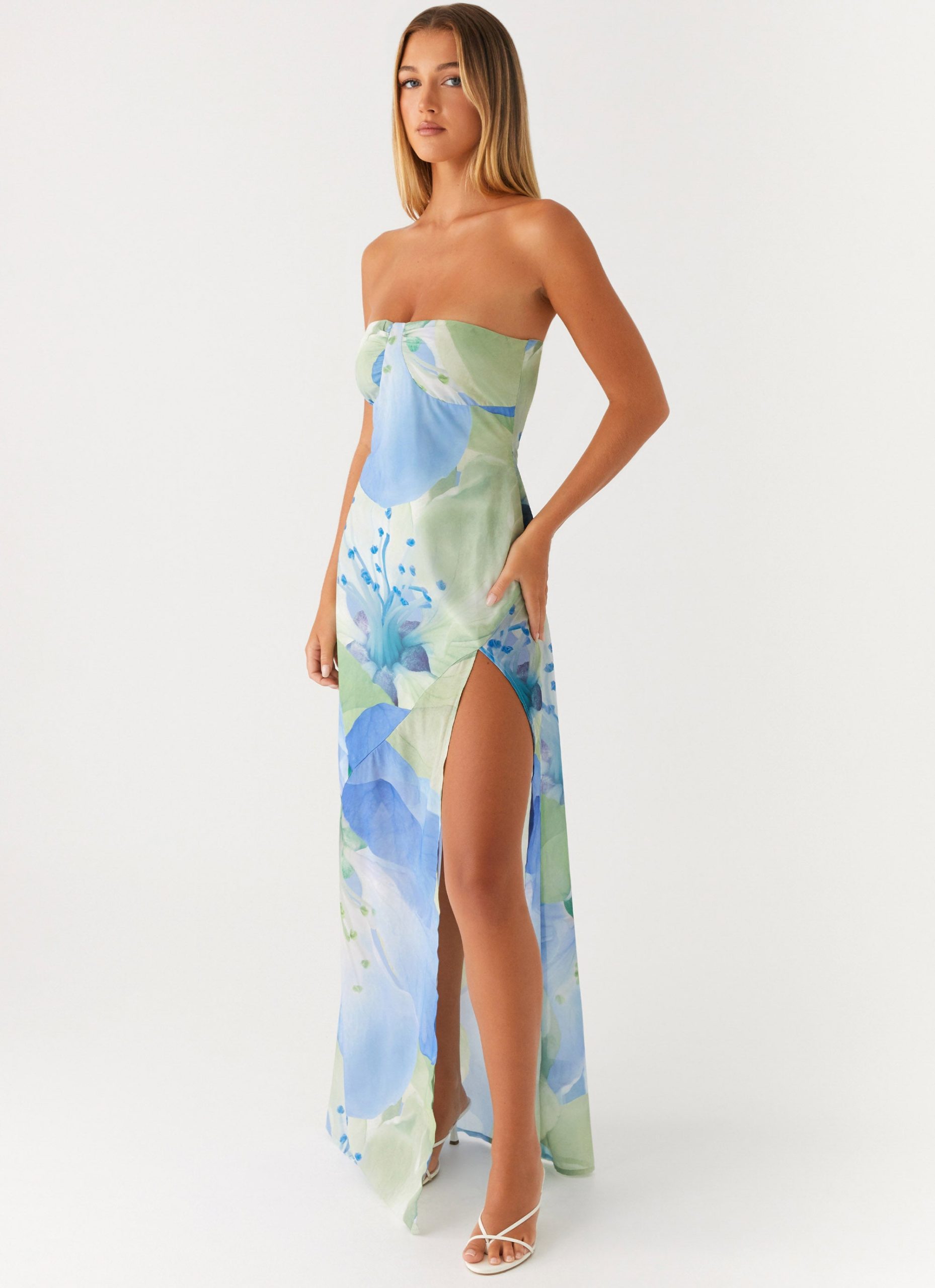 The Lawson Maxi Dress features a sweetheart neckline and a ruched center bustier that enhances your figure. Its fully lined design ensures comfort and a sleek fit throughout.