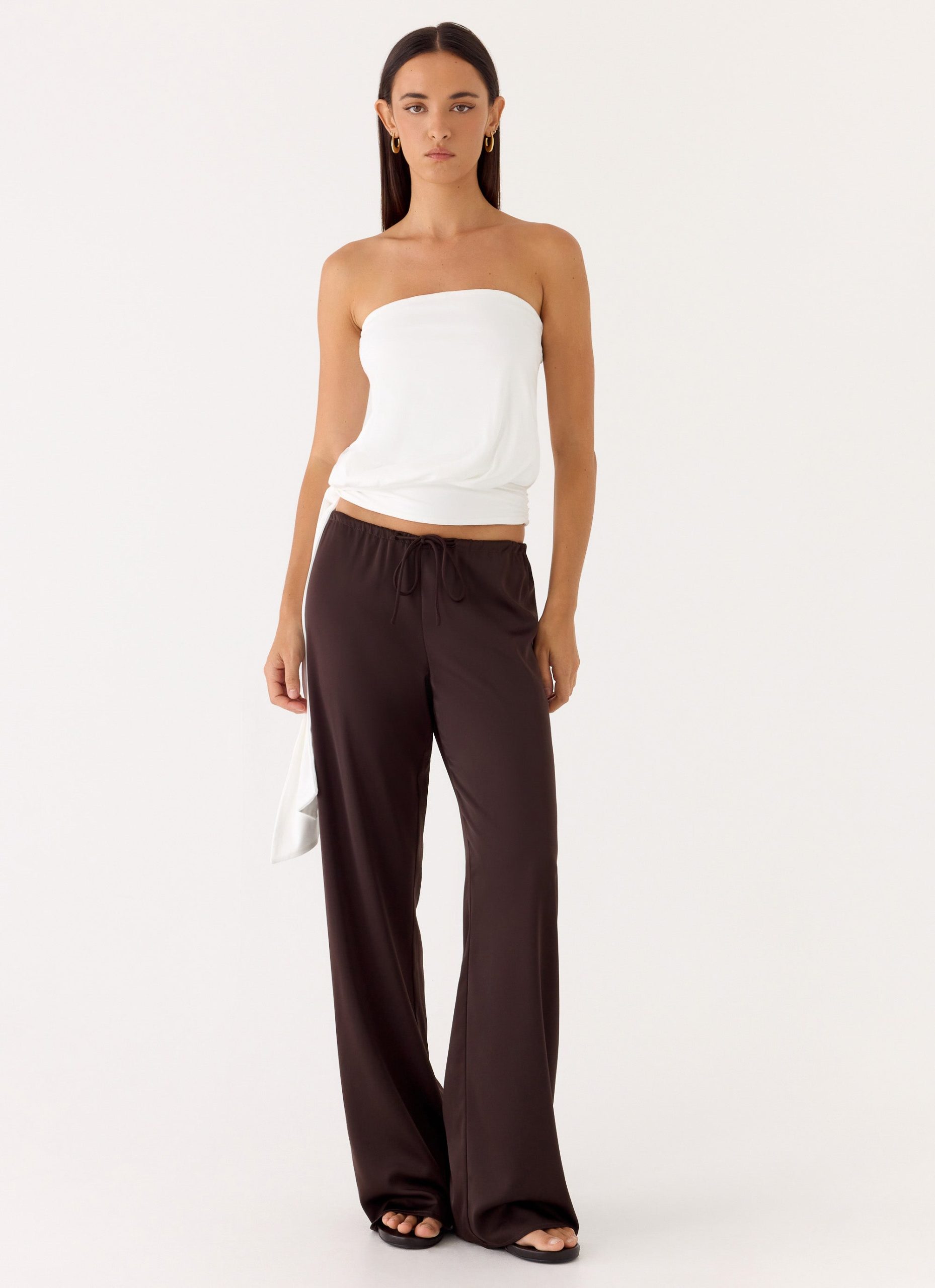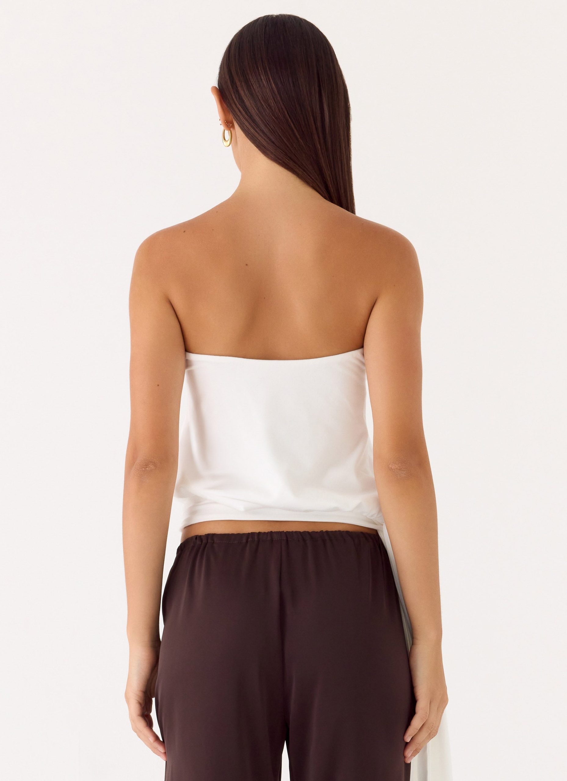The Livia Strapless Top features a strapless neckline with a softly sculpted blouson bodice. it hugs and drapes in all the right places. A wrap-style thick adjustable tie at the hem defines the silhouette. while full lining keeps the finish smooth from golden hour to after dark.