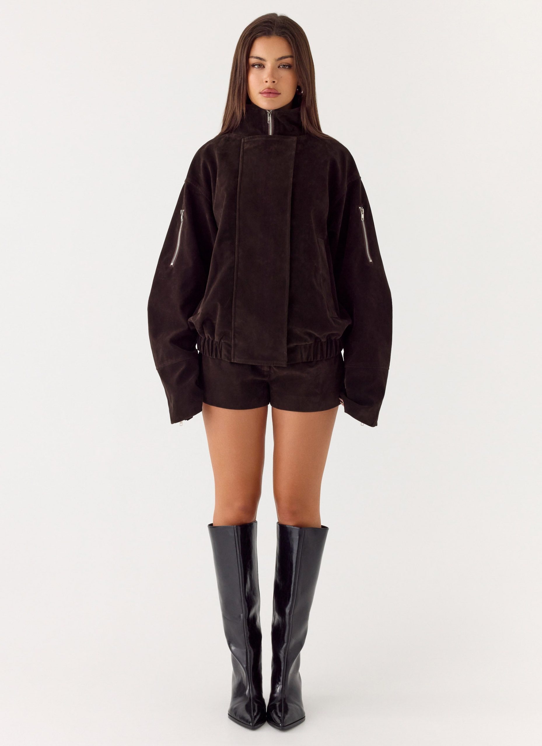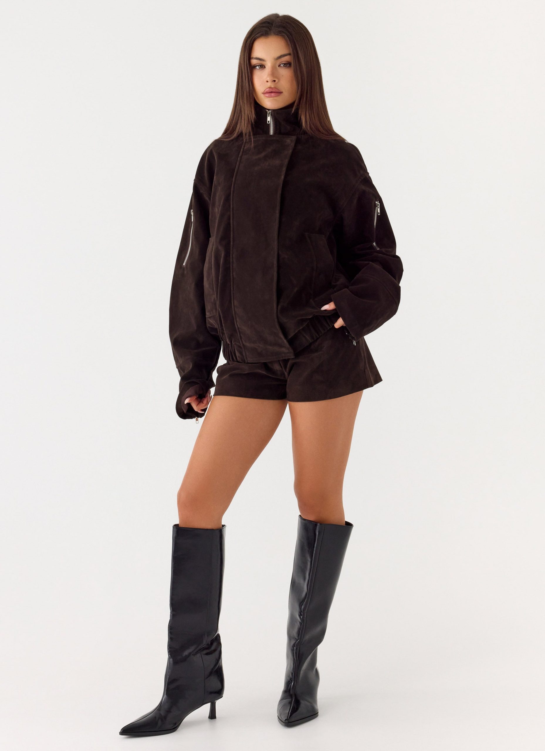 Marlow Faux Suede Jacket – Chocolate