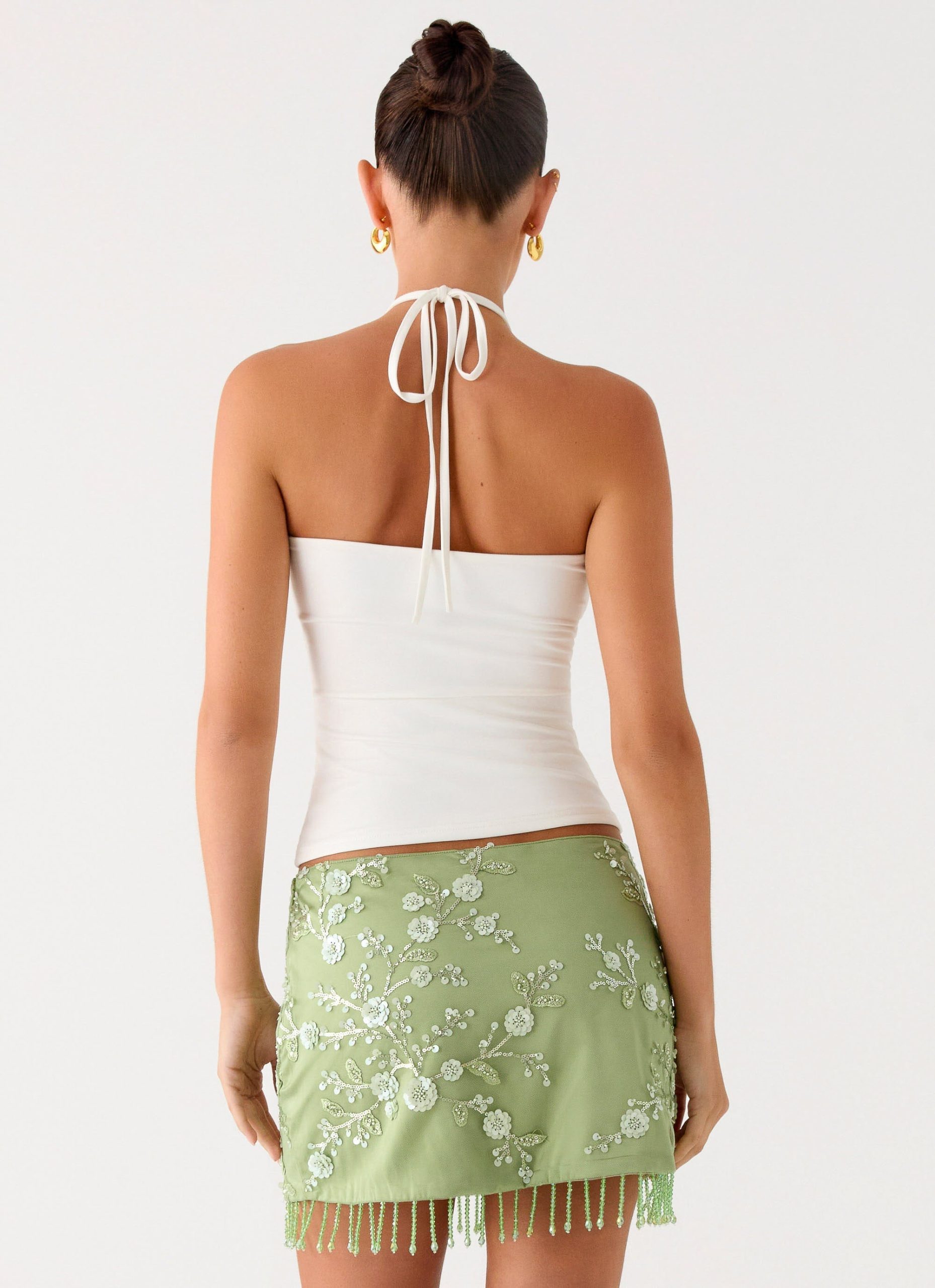 Siren Beaded Sequin Mini Skort – White