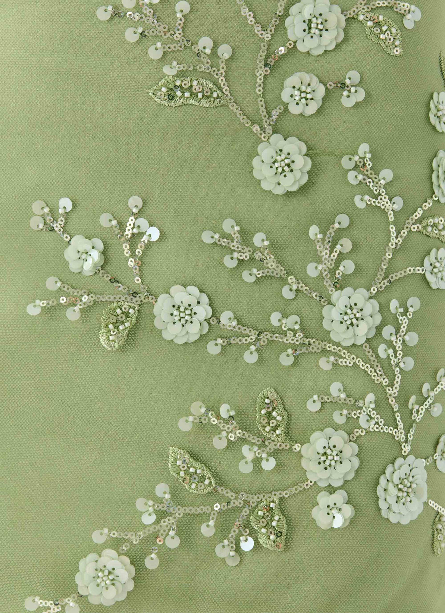 – Beaded material with unique placement