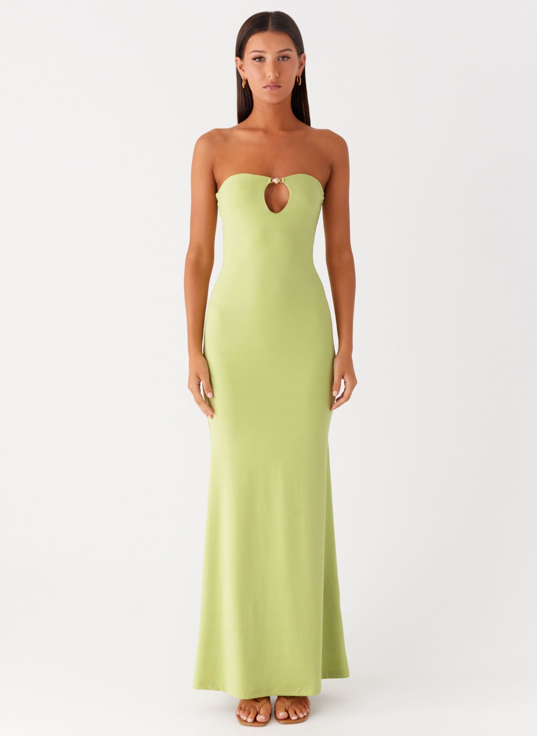 The Moara Cut Out Maxi Dress brings bold elegance to every summer night. Featuring a strapless neckline with silicone taping for a secure fit. this maxi stunner boasts front cut-outs and a striking metal embellishment that elevate its silhouette. Crafted in stretch jersey and fully lined. it’s the ultimate statement piece for golden hour to midnight.