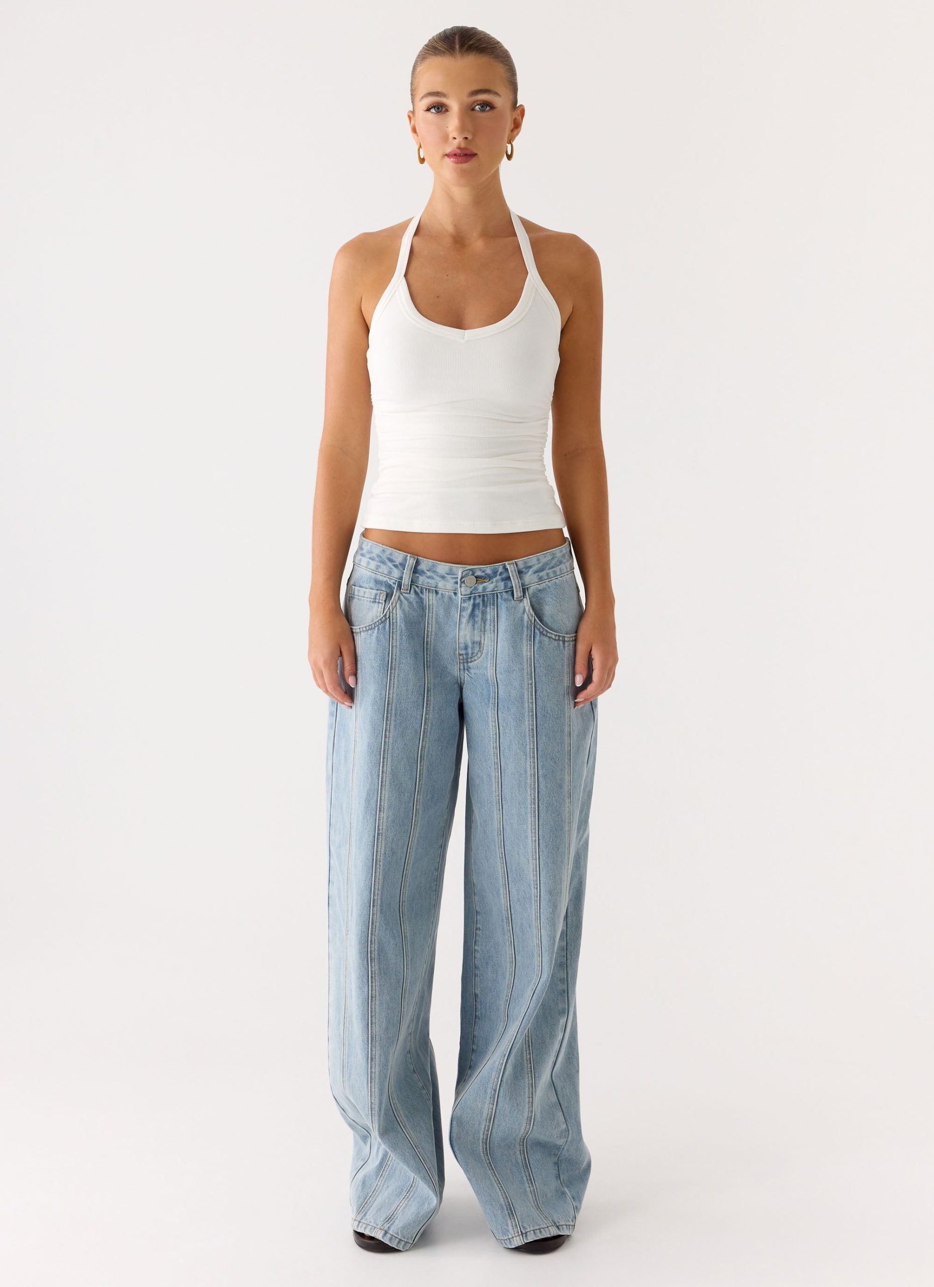 The Naturi Ribbed Halter Top is made for warm nights that blur into sunrise. With a flattering halter neckline and body-hugging fit. this premium jersey piece is self-lined for smooth structure and dips into a low back for an effortless after-dark silhouette. Perfect for taking you from beach bar to golden hour cocktails.