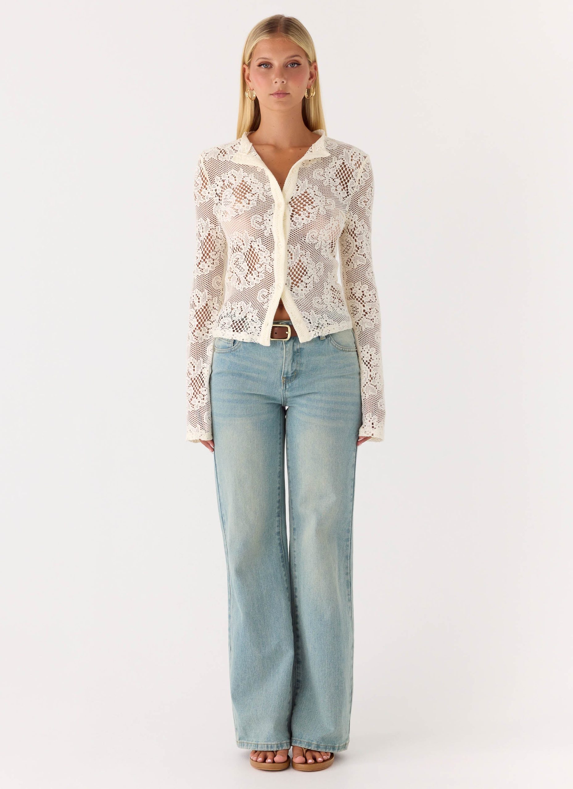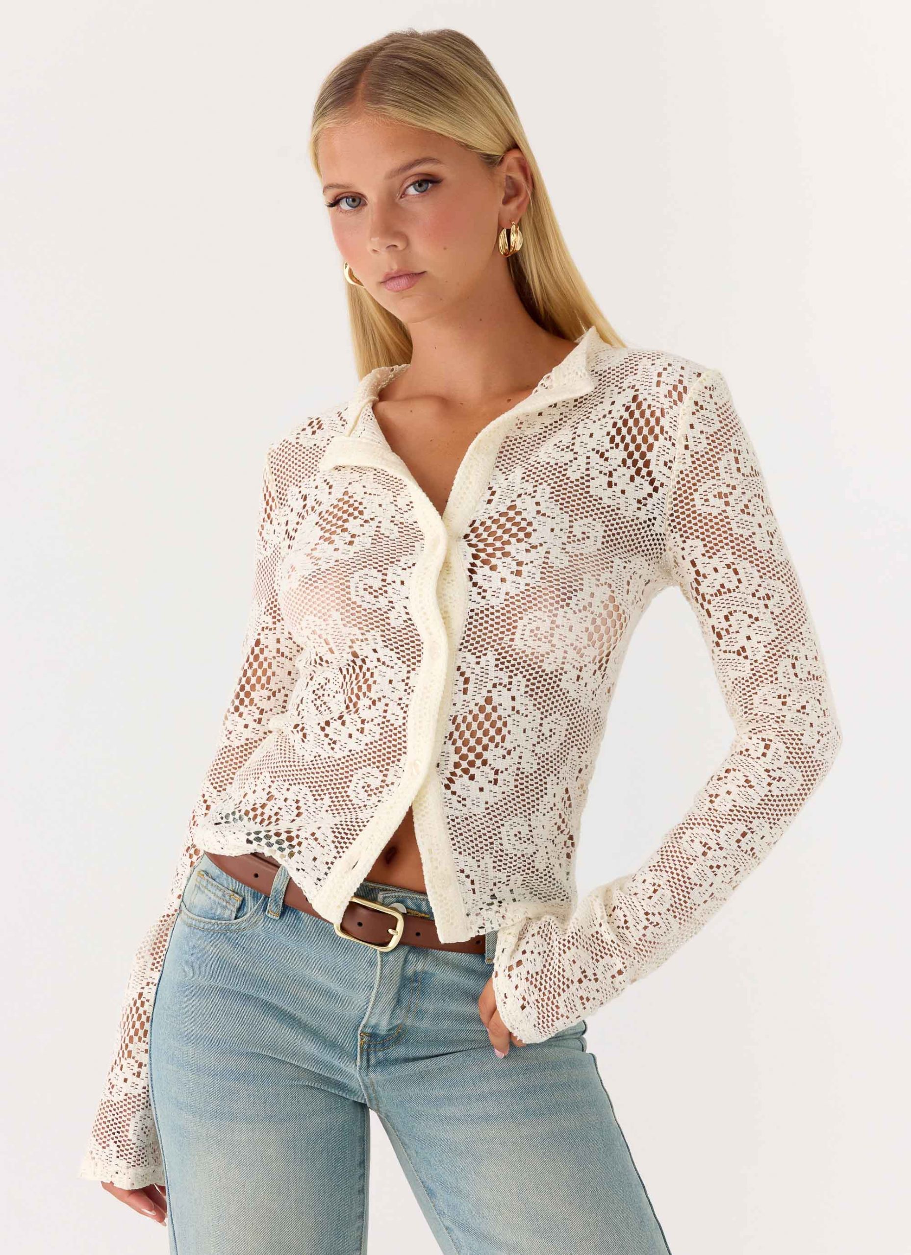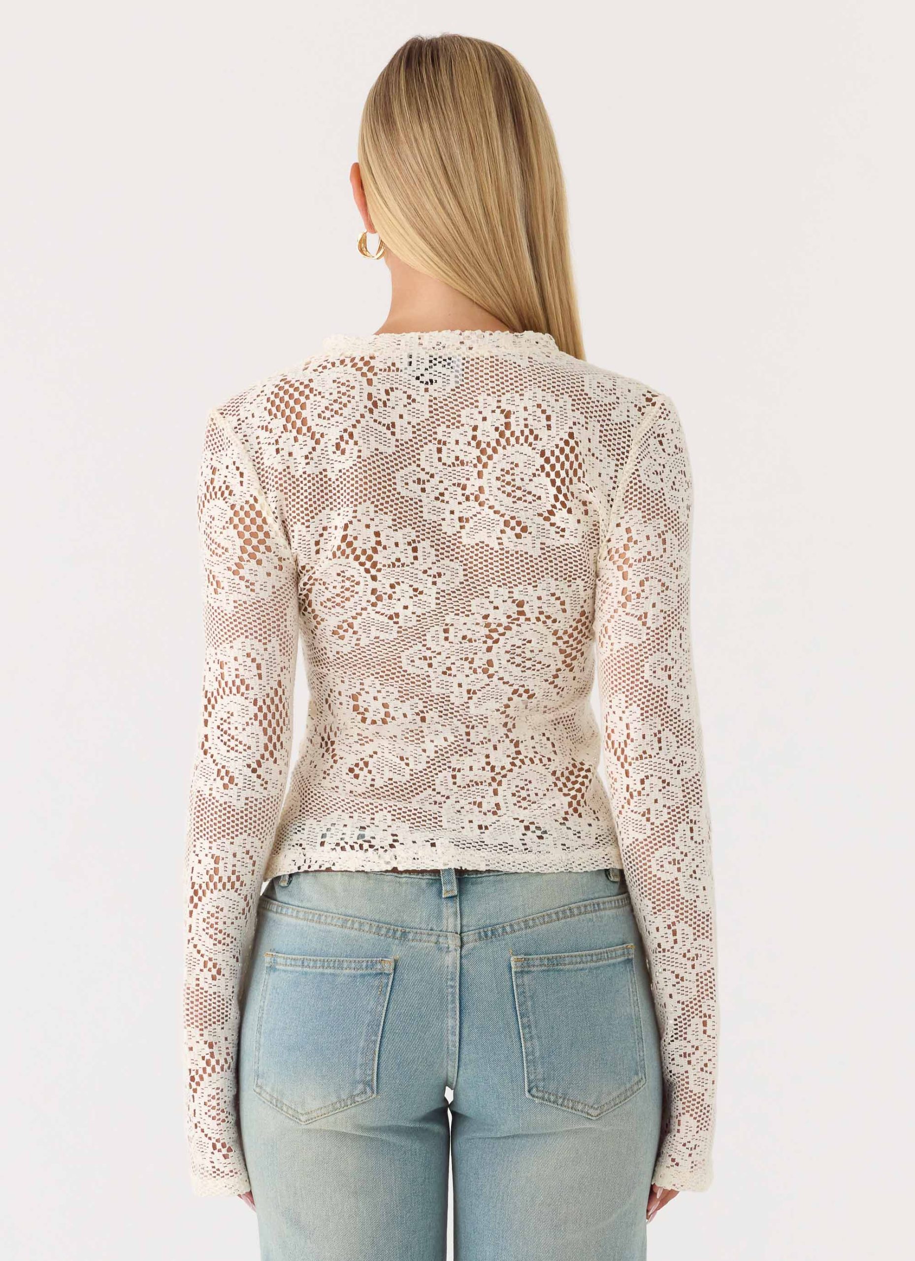 The Orellia Long Sleeve Top is made for breezy evenings that shimmer with subtle elegance. Featuring a round neckline and a functional button-front closure. this long-sleeve silhouette is crafted in delicate lace for an effortless. feminine finish. Unlined for a lightweight feel. it’s made to move from daytime glow to after-dark allure.