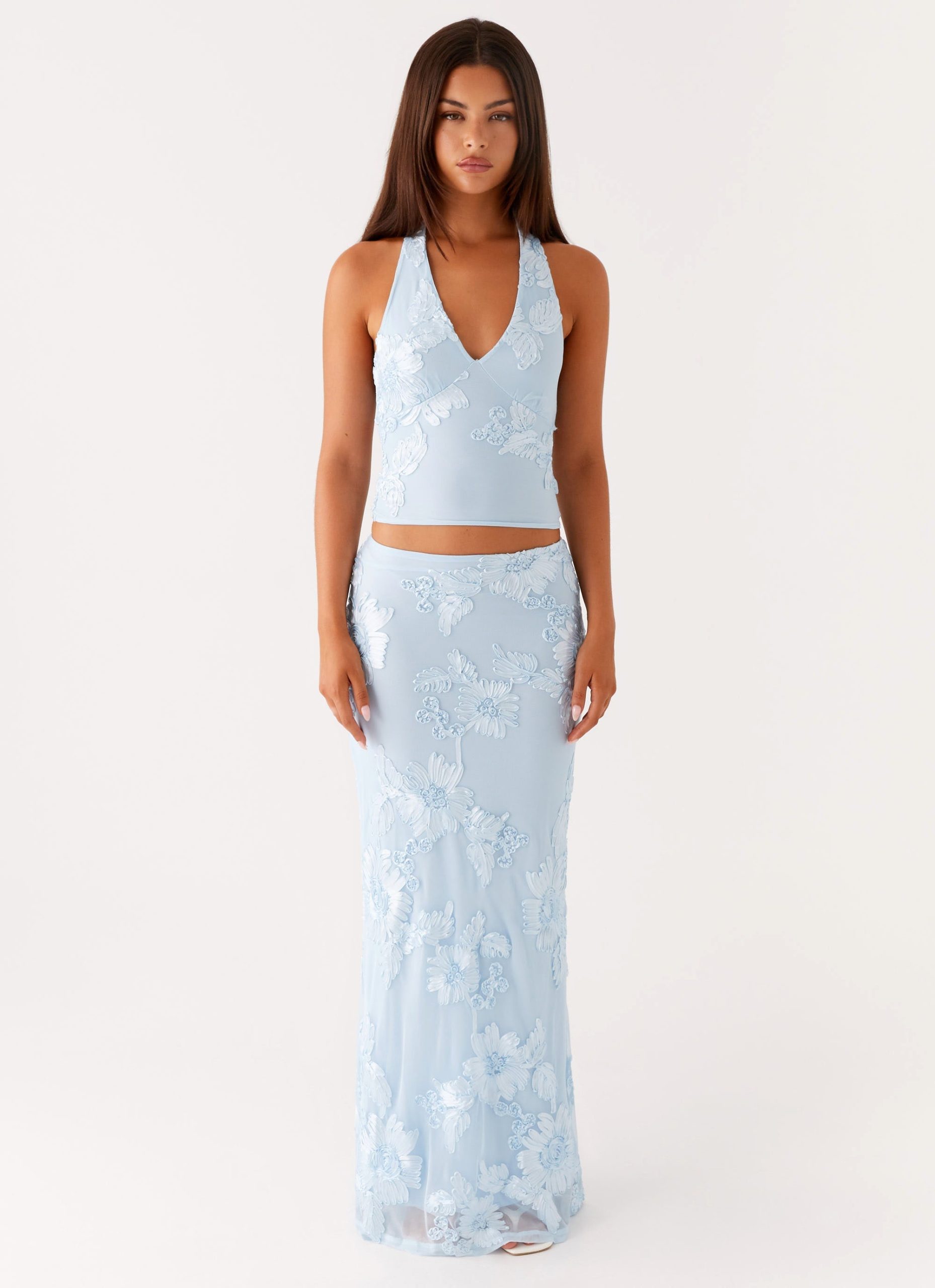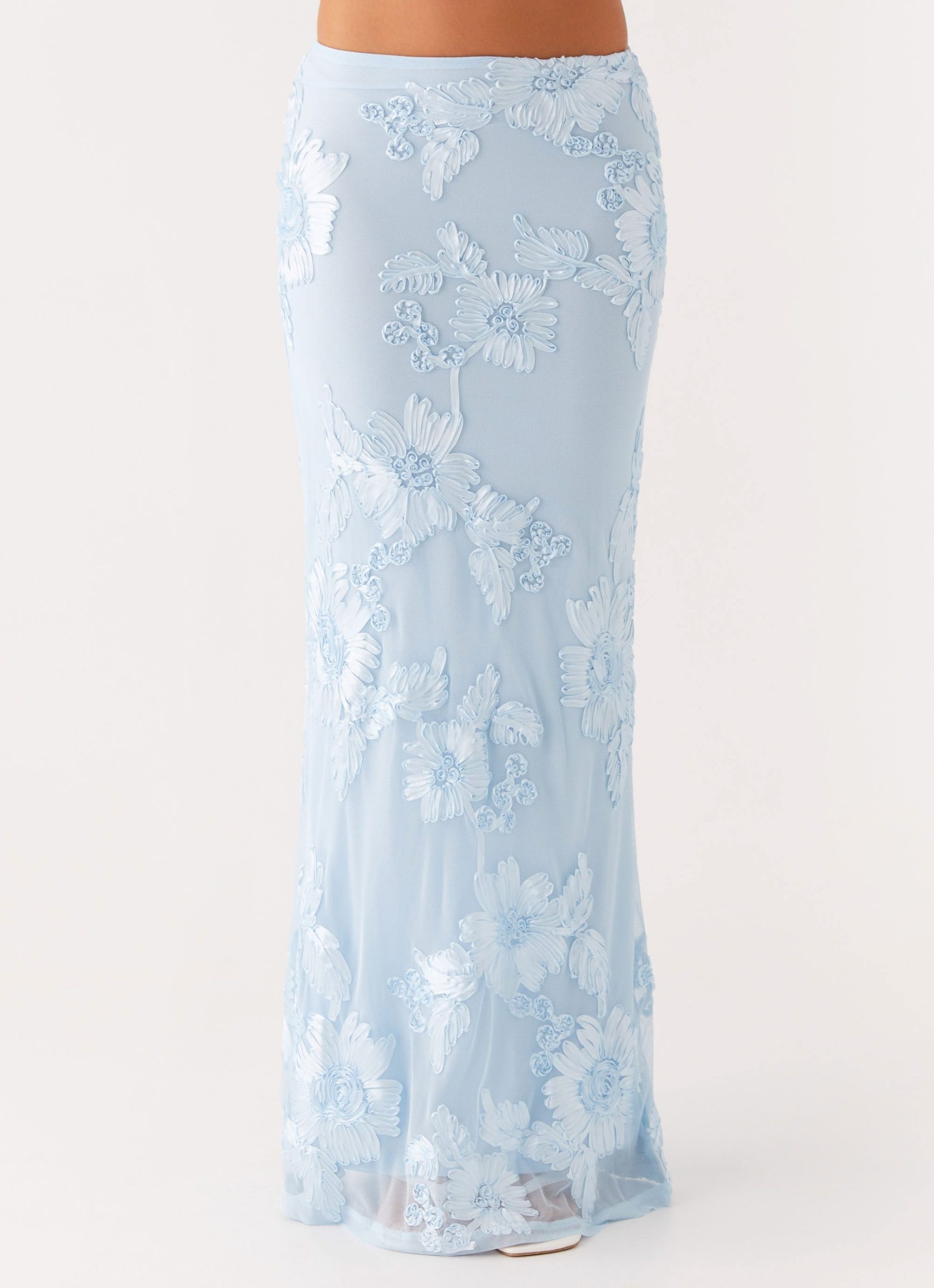 Turn heads in the Radiate Maxi Skirt. crafted from stretch mesh with statement flower textured detailing. Designed to sit low on the waist. this fully lined piece skims the figure for a flattering maxi-length silhouette.