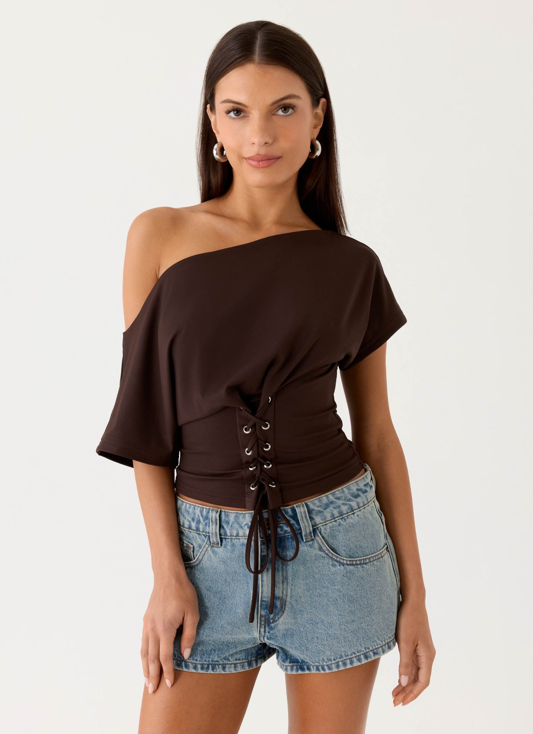 The Rafinha Top is made for sunlit afternoons that glide into golden hour evenings. Featuring an off-shoulder style. short sleeves. and an adjustable lace-up waist. it sculpts a flattering. feminine silhouette while being fully lined for comfort and effortless confidence.