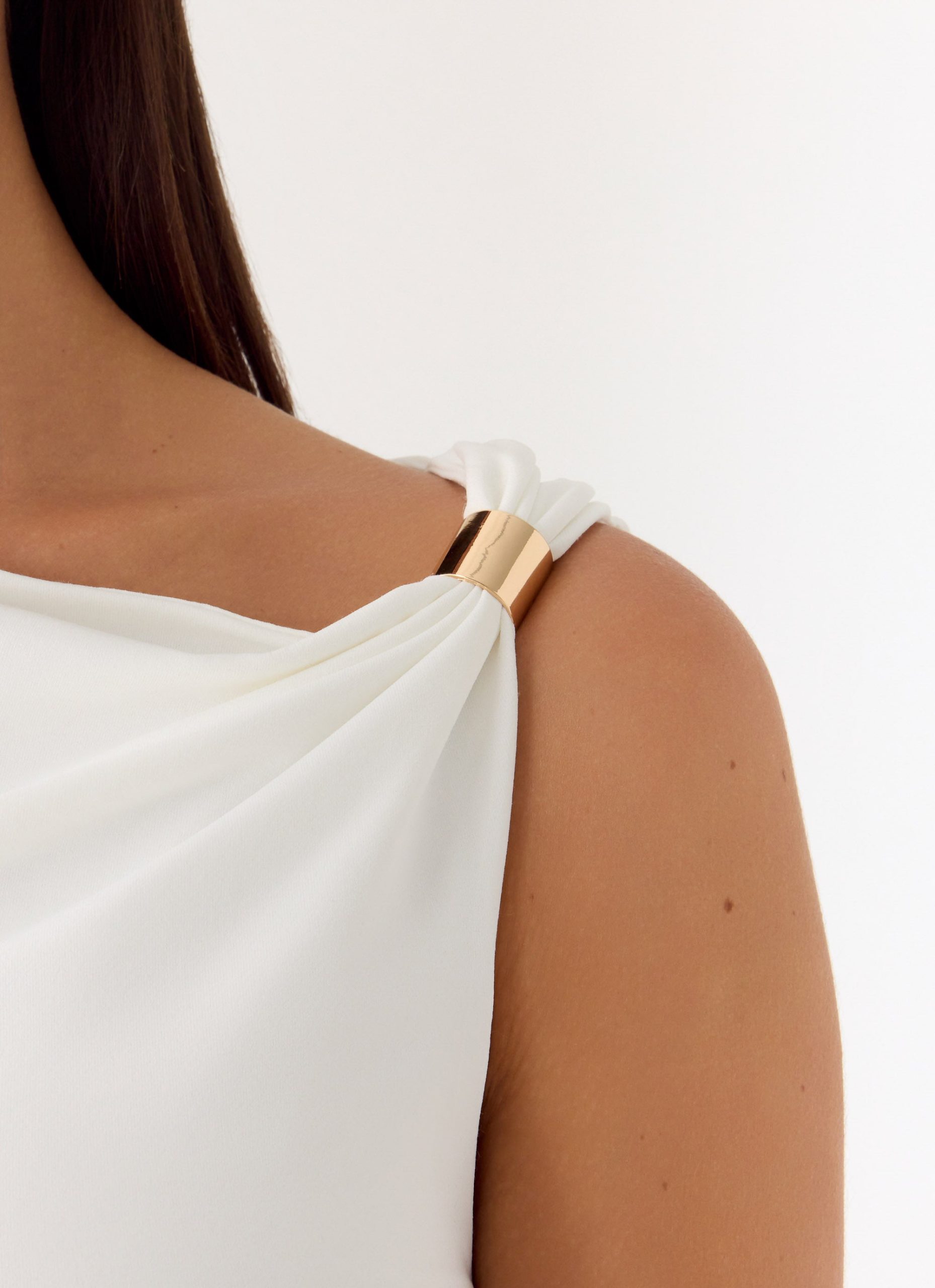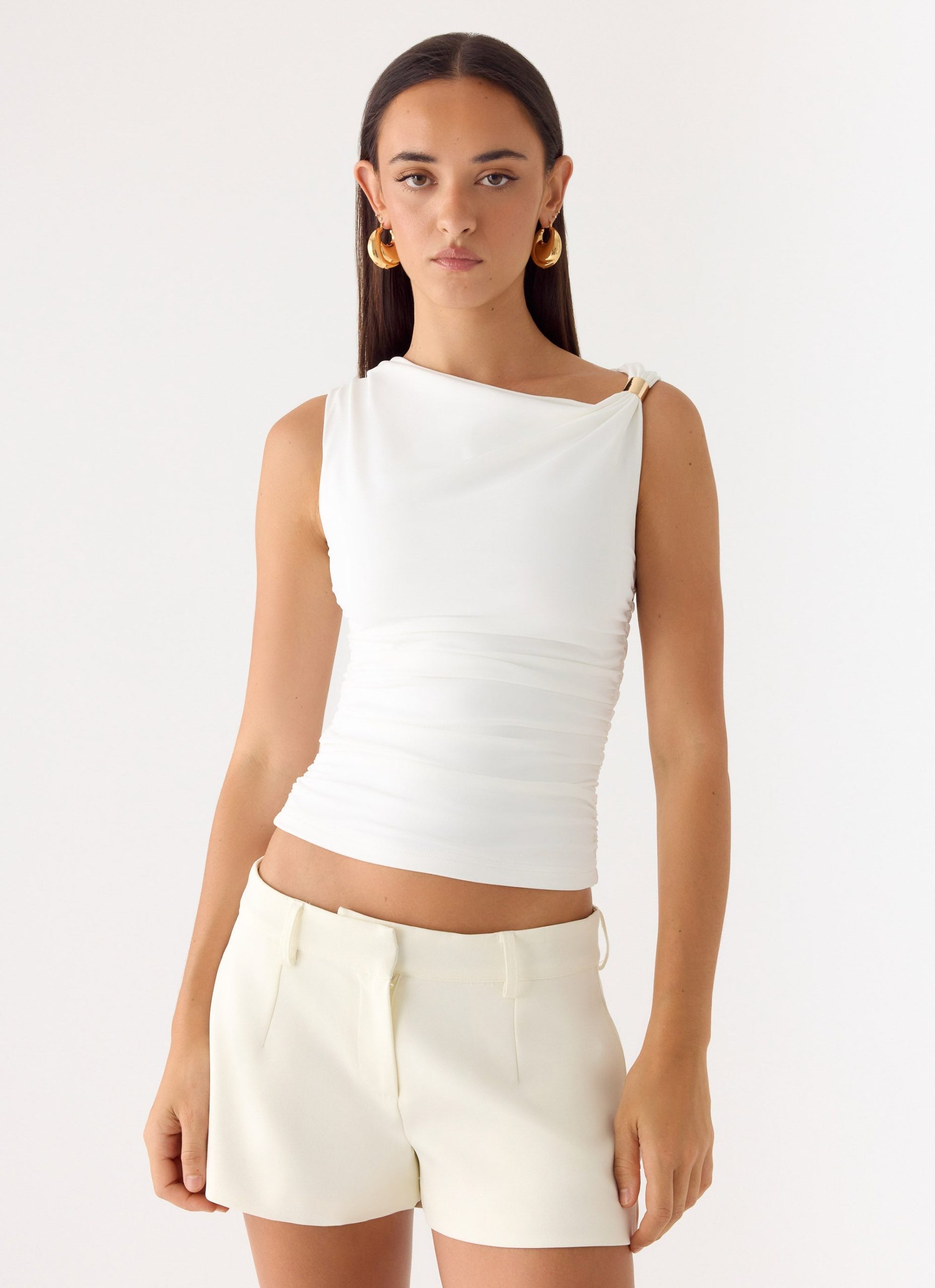 The Short Notice Top is crafted for elevated. statement-making styling with a sleek. modern silhouette. Featuring gold hardware and waist gathering. this fully lined stretch jersey top skims the body for a polished. flattering fit. Soft. structured. and effortlessly chic. it’s perfect for day-to-night occasions.